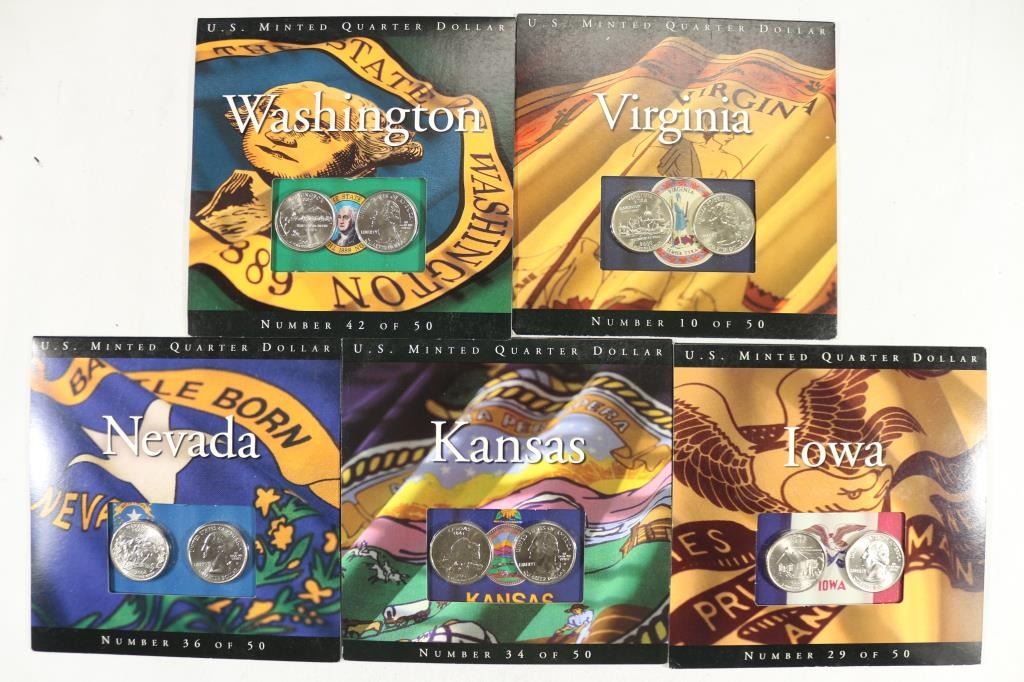 2004 IOWA, 2005 KANSAS, 2006 NEVADA, 2000 VIRGINIA AND 2007 WASHINGTON, ORIGINAL US MINT PACKAGING