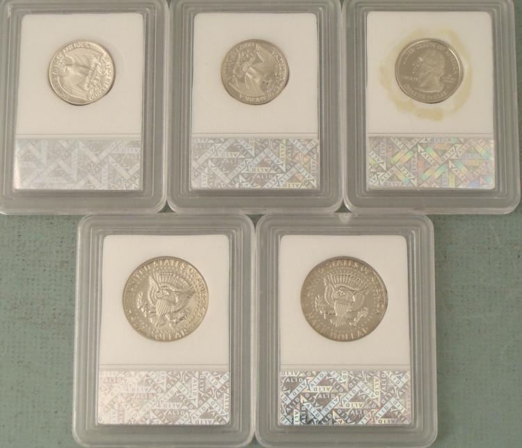 5 US PR70 Slabbed Coins Quarters, Halves 1979-2005