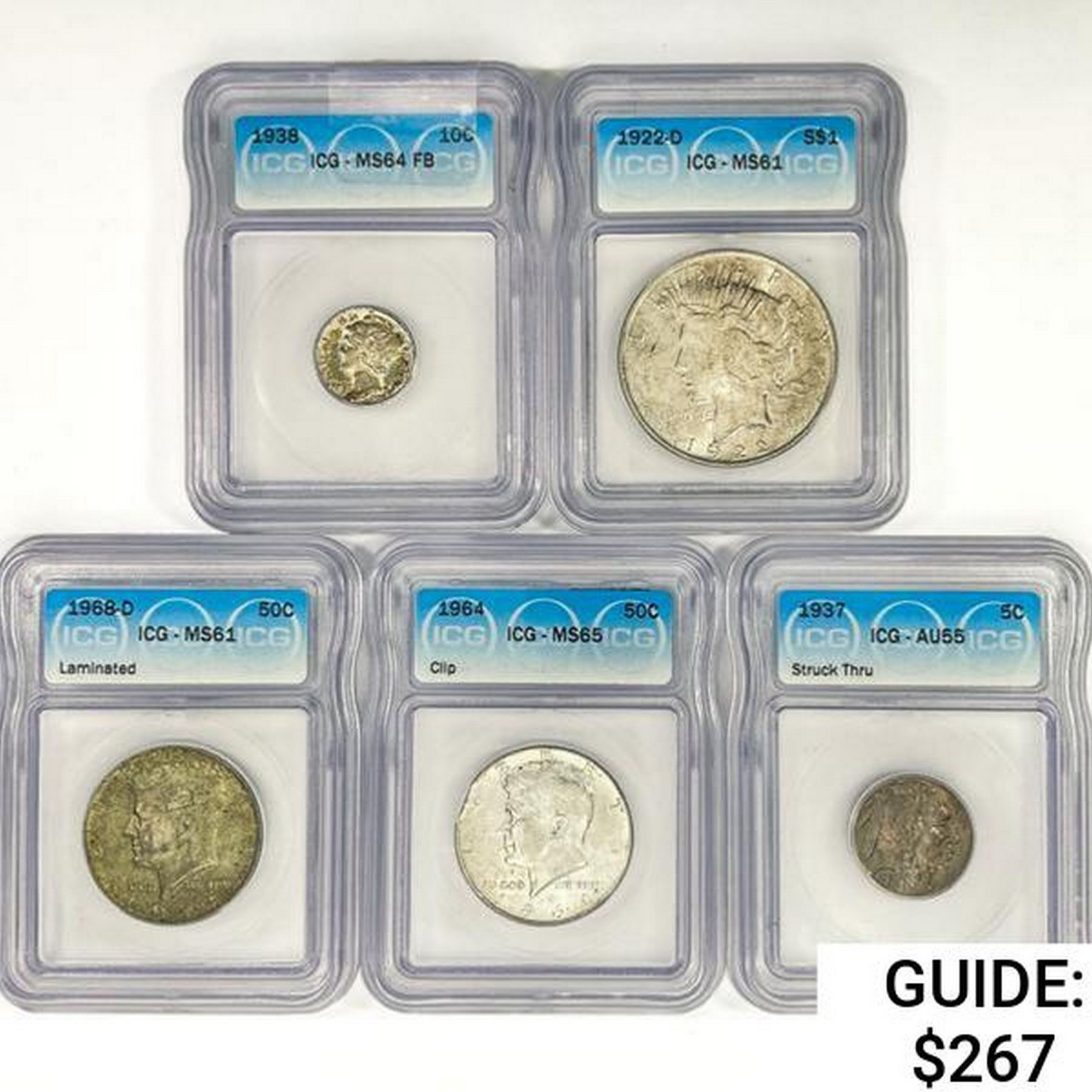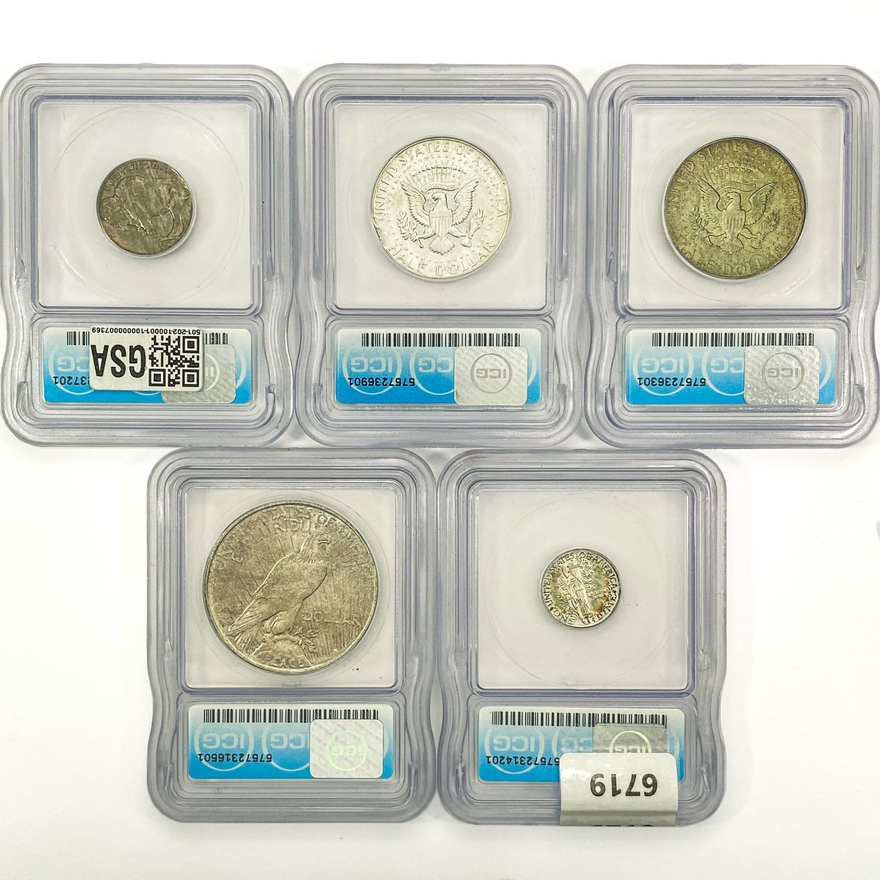 [5] US Varied Silver Coinage ICG AU,MS 1922-1968