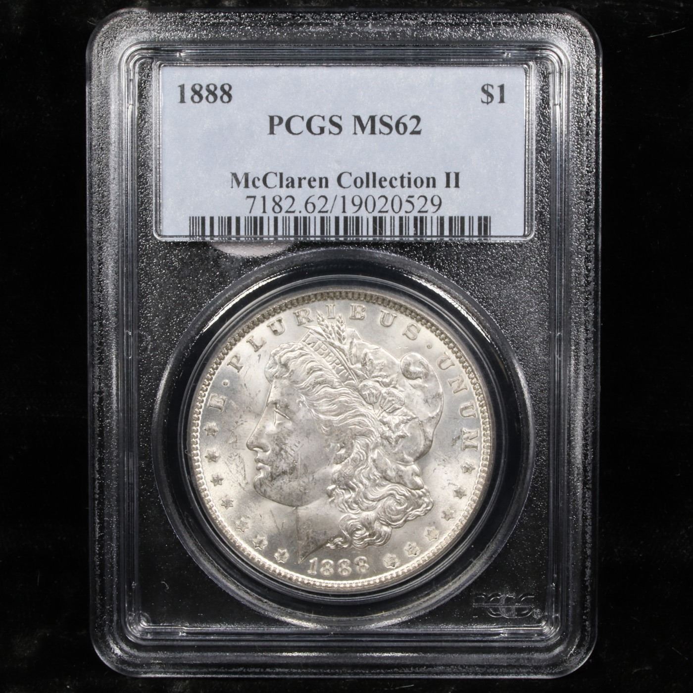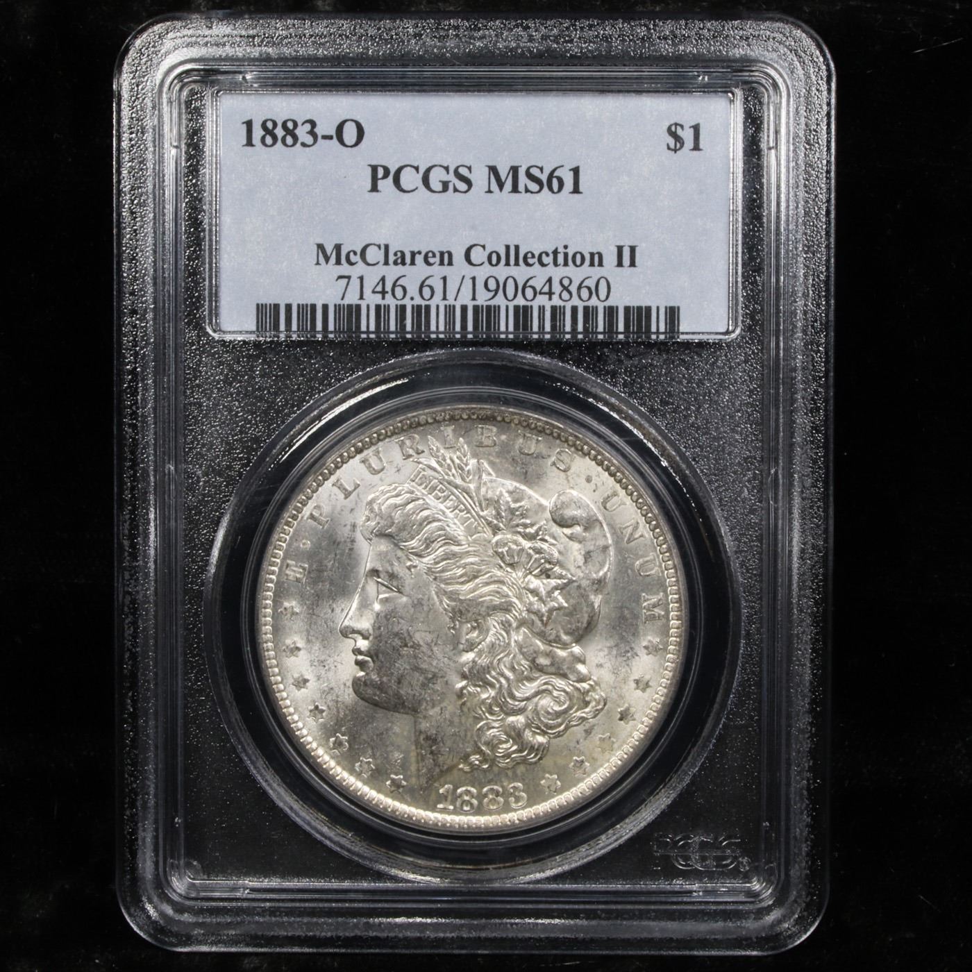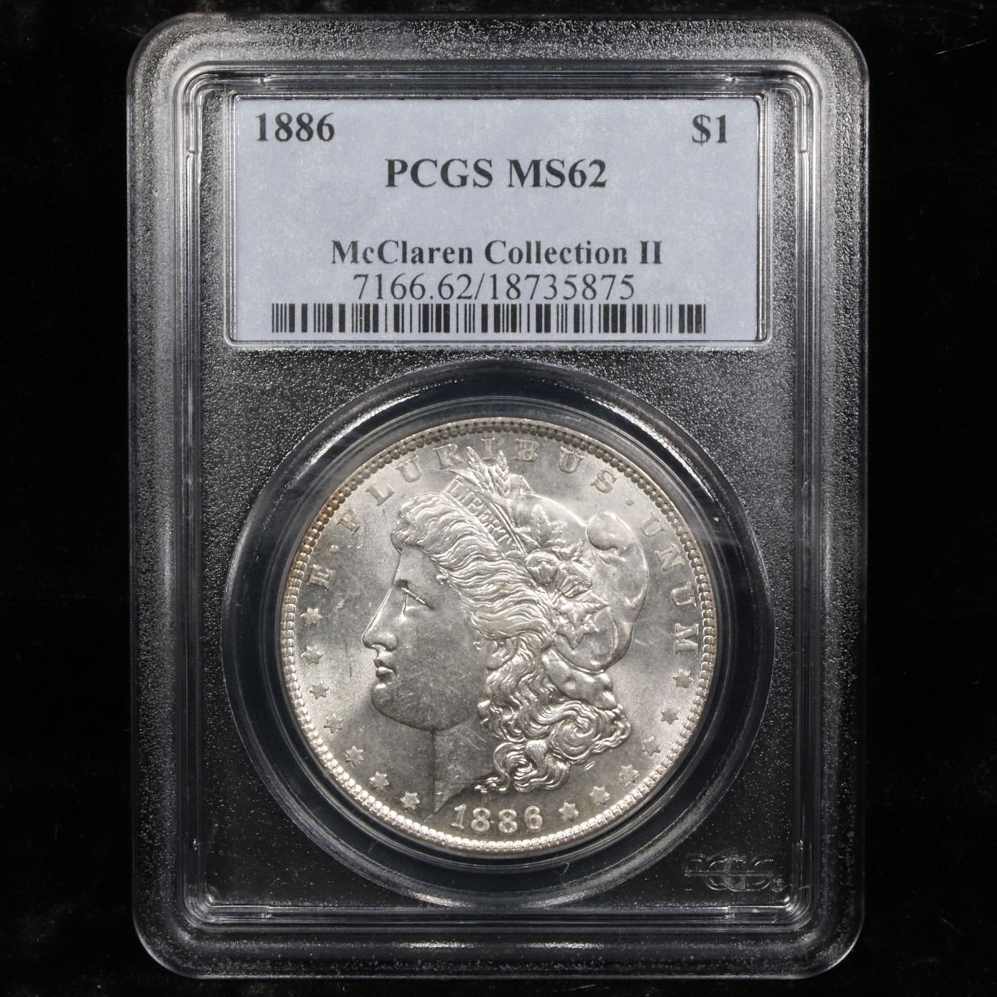 5 Unc Morgan $1 Graded By PCGS Mixed Dates From The McClaren Collection Grades. 1904-o $1 MS61 By PCGS, 1883-o $1 ms61 By PCGS, 1886-p $1 ms61 By PCGS, 1885-o $1 MS61 By PCGS, 1888-p $1 ms61 By PCGS, Estimate $300 ,****Please Note you will Revieve exact slabs pictured in lot