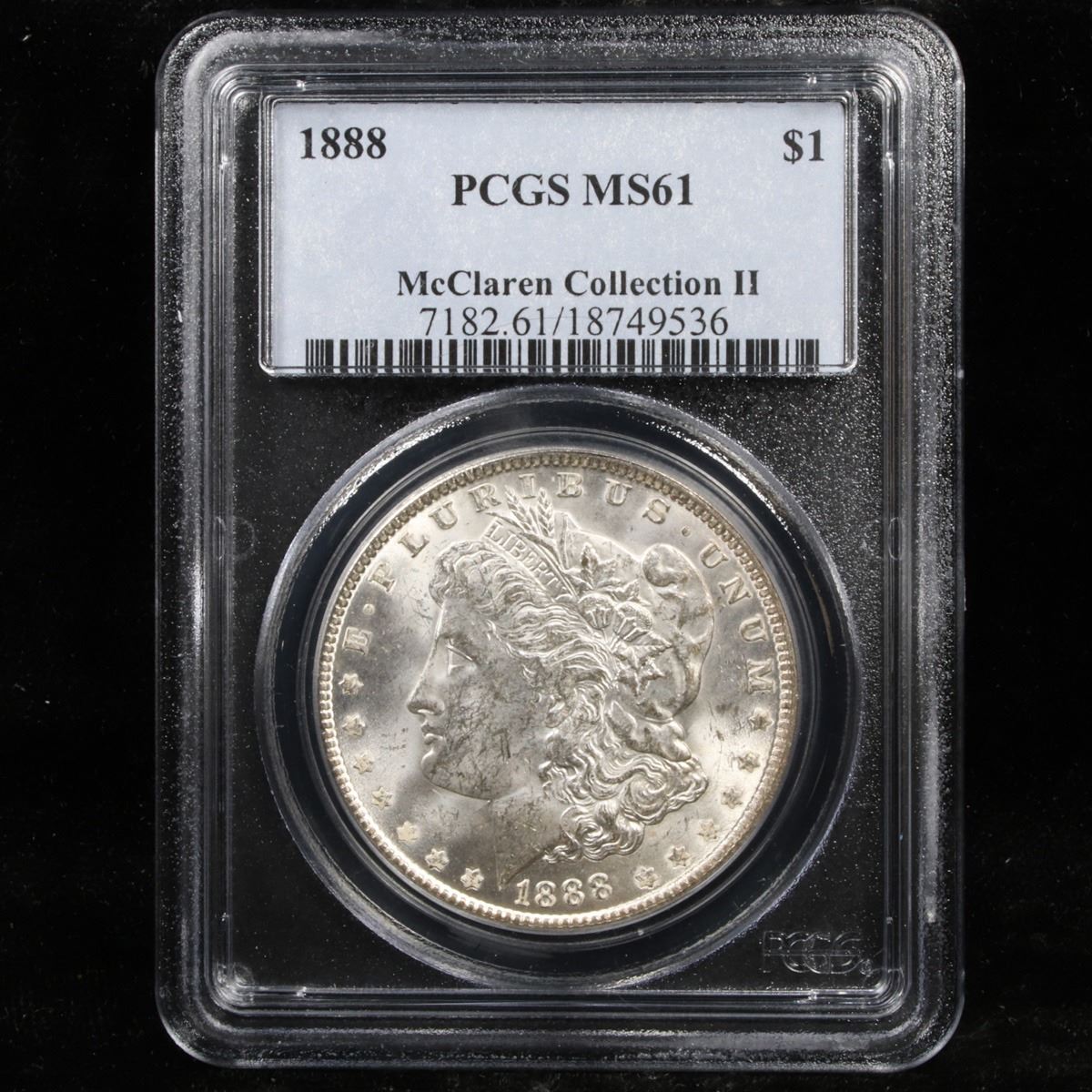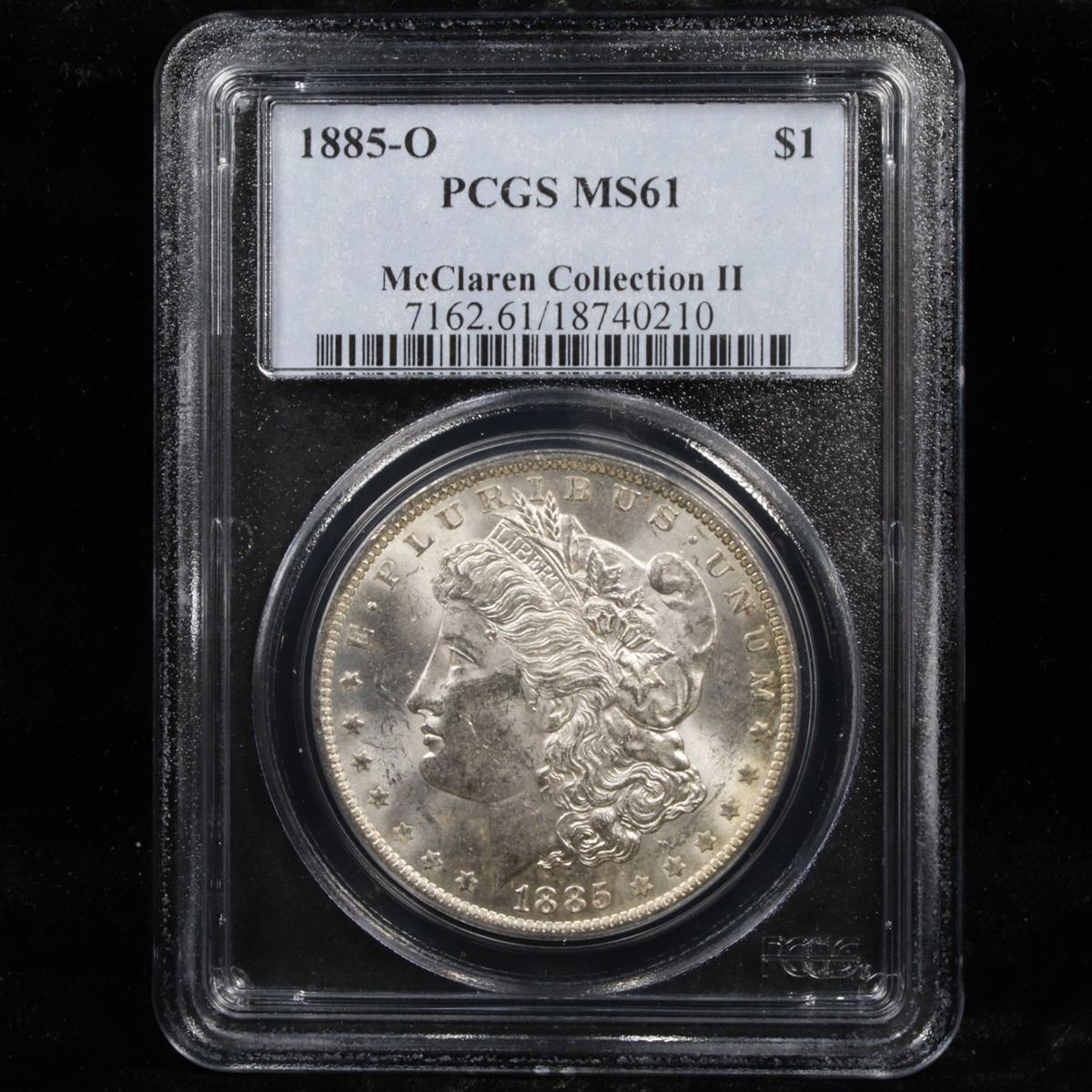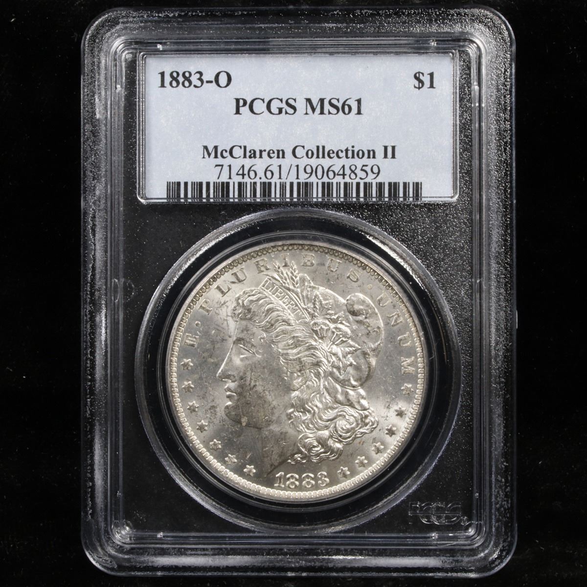 5 Unc Morgan $1 Graded By PCGS Mixed Dates From The McClaren Collection. 1884-o $1 MS61 By PCGS, 1883-o $1 ms61 By PCGS, 1888-p $1 ms61 By PCGS, 1885-o $1 MS61 By PCGS, 1887-p $1 ms61 By PCGS, Estimate $300 ,****Please Note you will Receive the exact slabs pictured in lot