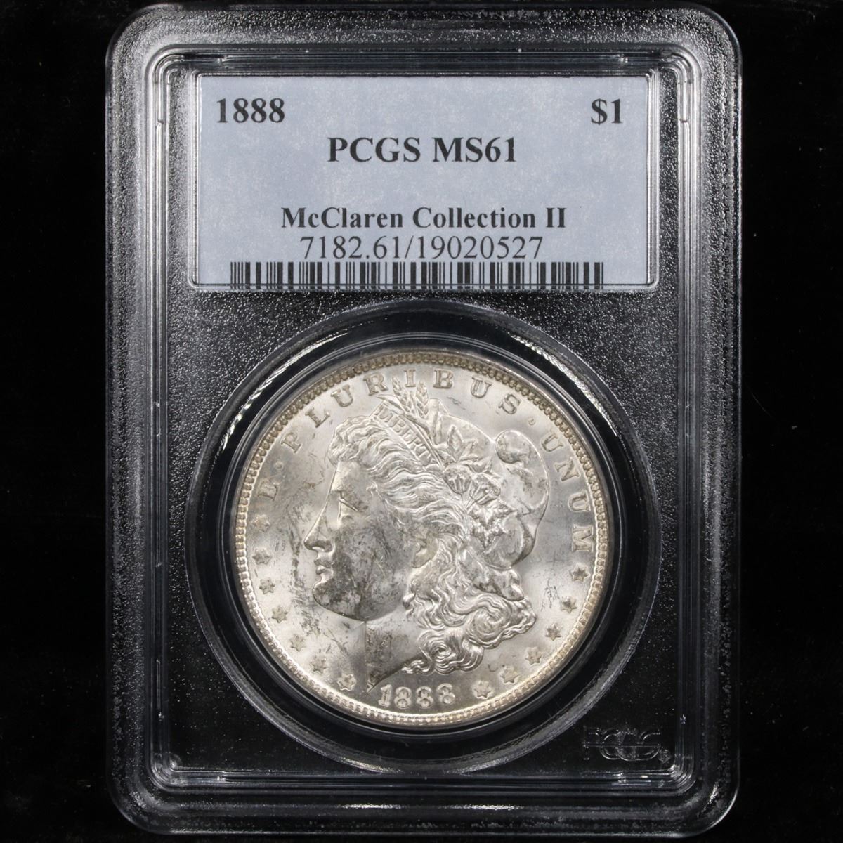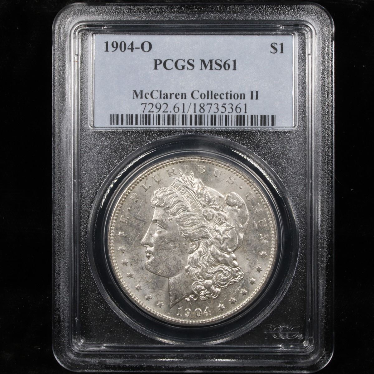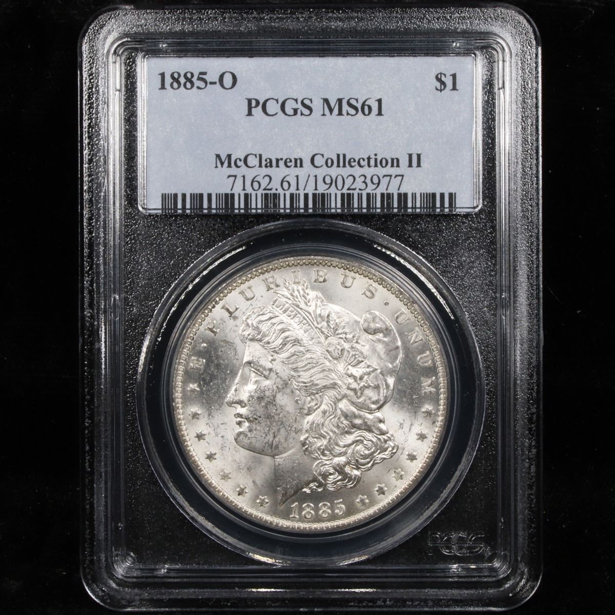5 Unc Morgan $1 Graded By PCGS Mixed Dates From The McClaren Collection. 1884-o $1 MS61 By PCGS, 1883-o $1 ms61 By PCGS, 1888-p $1 ms61 By PCGS, 1904-o $1 MS61 By PCGS, 1885-o $1 ms61 By PCGS, Estimate $300 ,****Please Note you will Revieve exact slabs pictured in lot