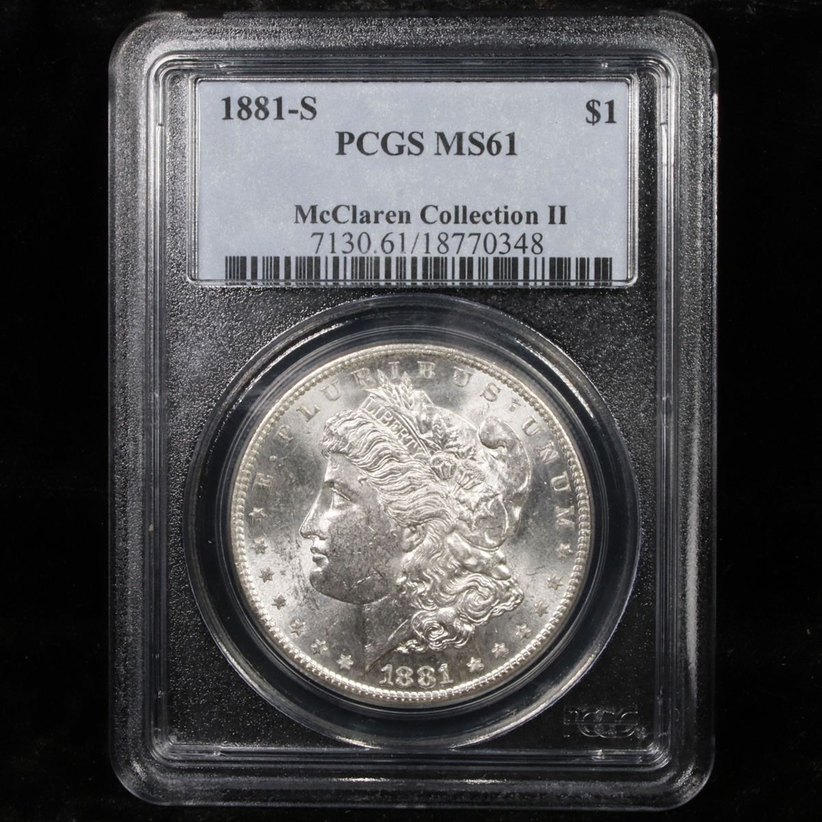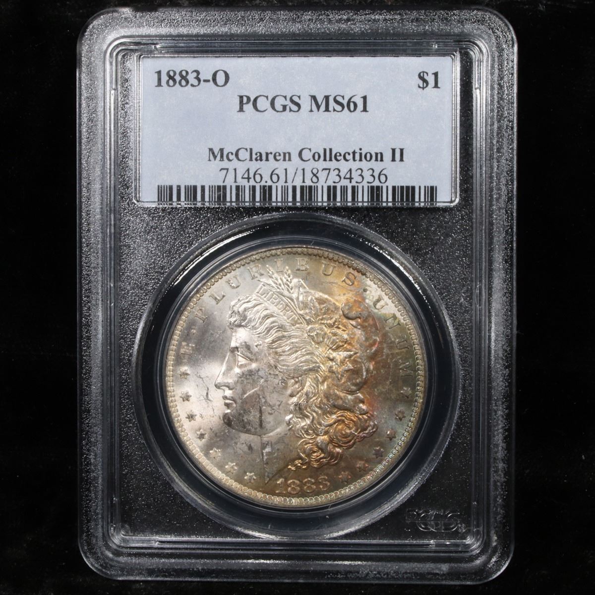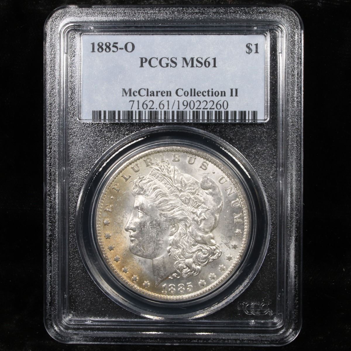 5 Unc Morgan $1 Graded By PCGS Mixed Dates From The McClaren Collection. 1884-o $1 MS61 By PCGS, 1883-o $1 ms61 By PCGS, 1881-s $1 ms61 By PCGS, 1885-o $1 MS61 By PCGS, 1904-o $1 ms61 By PCGS, Estimate $300 ,****Please Note you will Revieve exact slabs pictured in lot