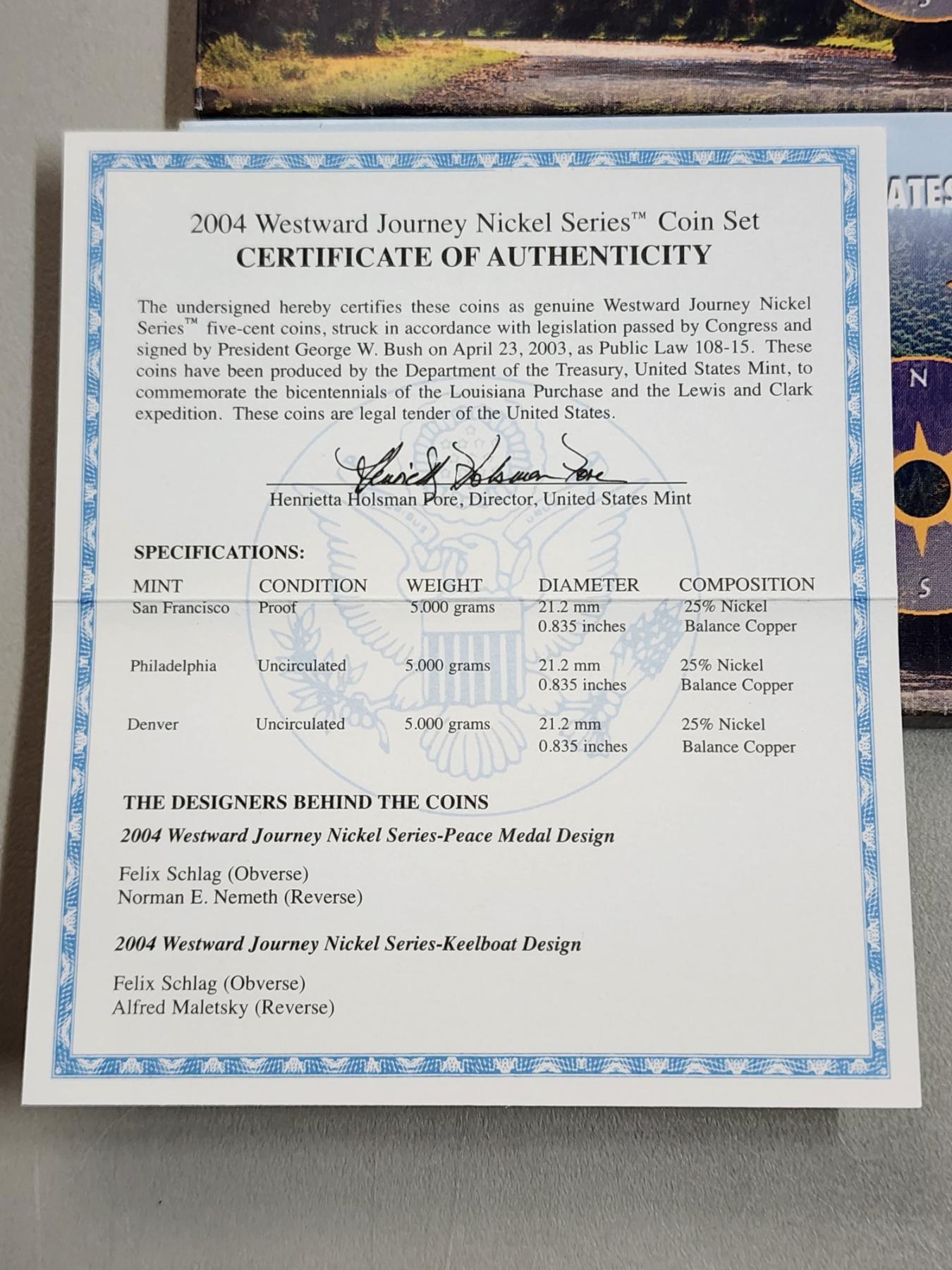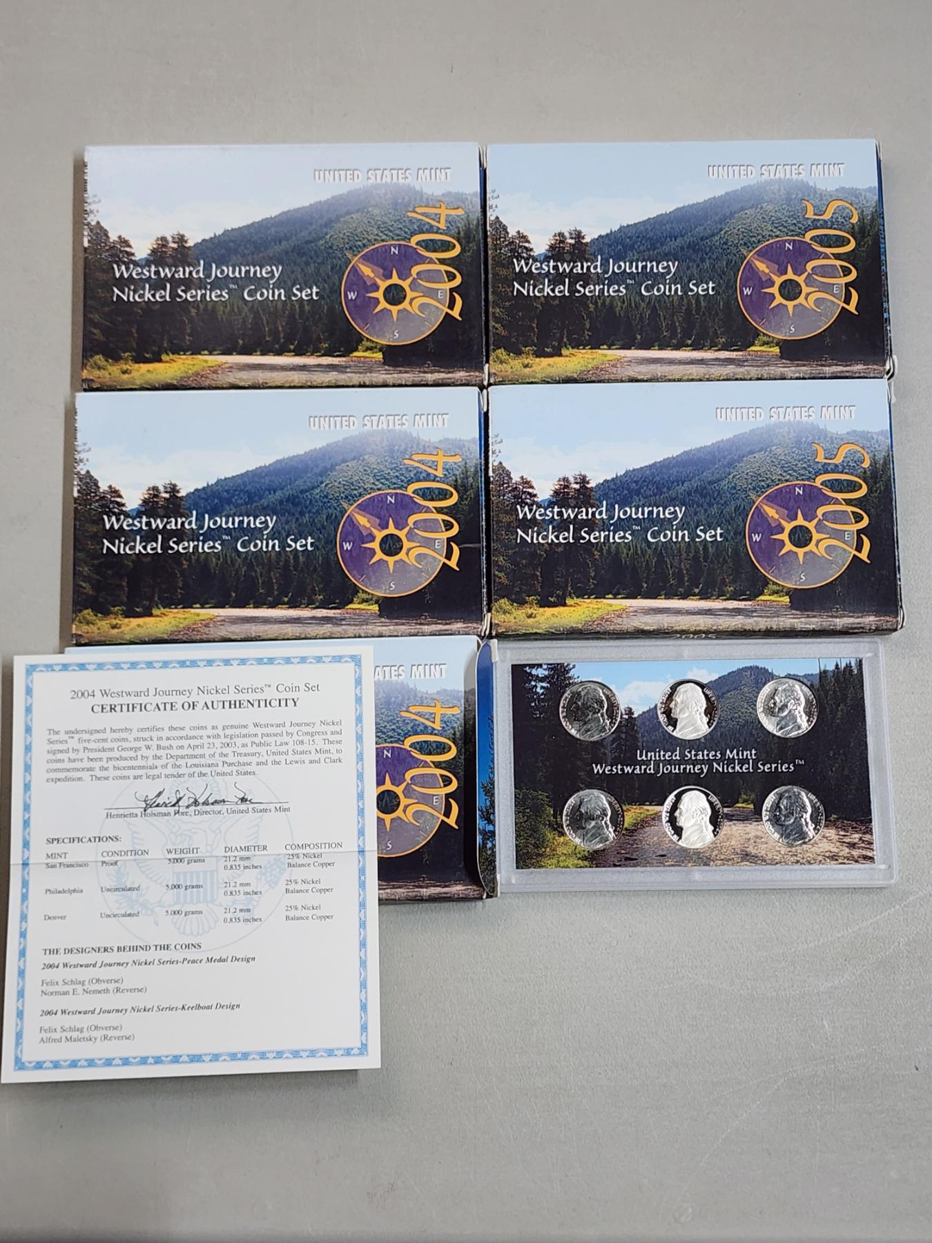 (5) United States Mint Westward Journey Nickel Series Coin Sets: (3) 2004, (2) 2005