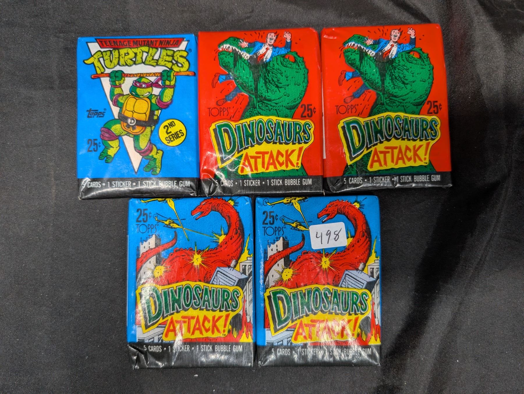 (5) Unopened Packs of 1988 Dinosaurs Attack! (1) TMNT Series II Cards