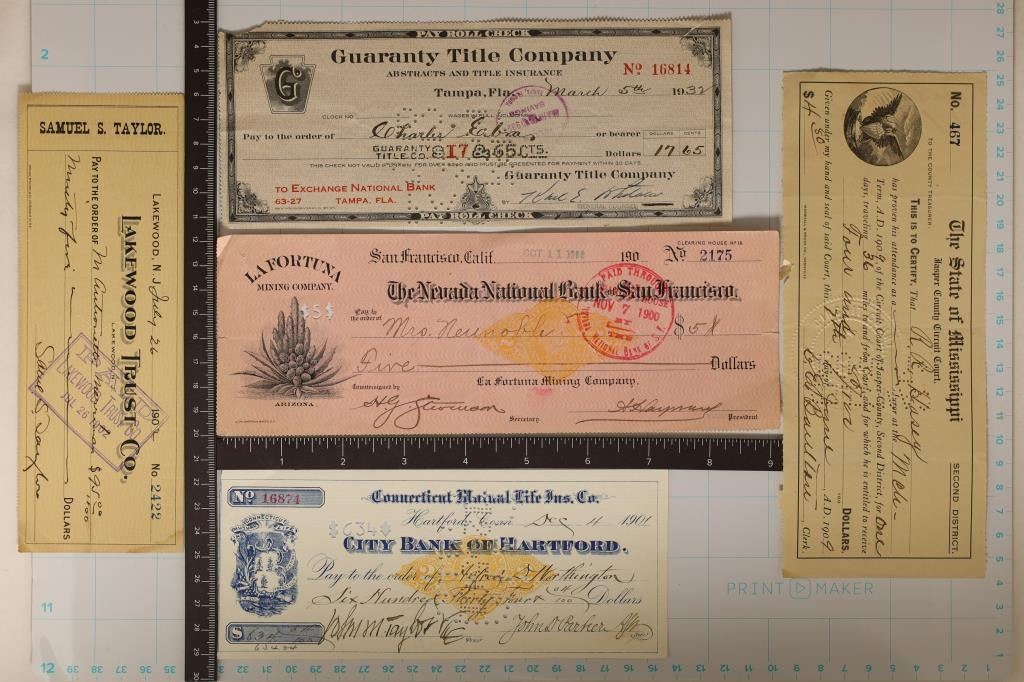 5-VINTAGE CANCELLED BANK CHECKS: 1901, 1902, 1909,