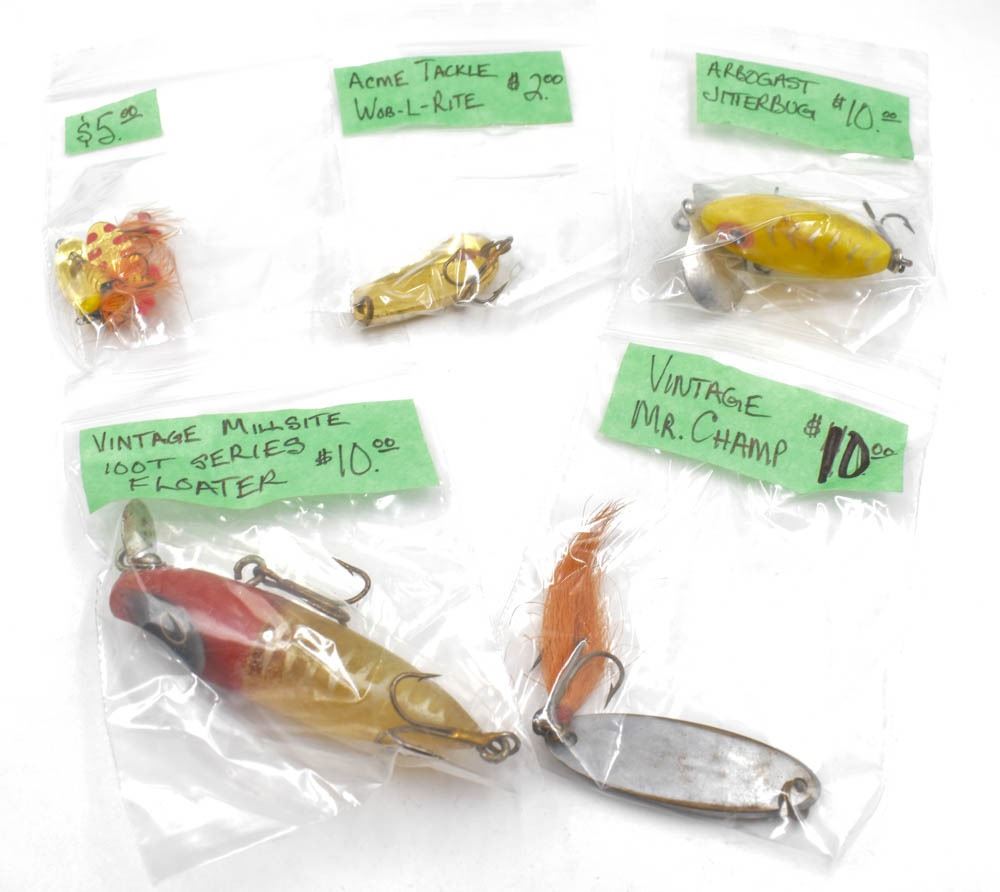 5 VINTAGE FISHING LURES INCLUDES MILLSITE