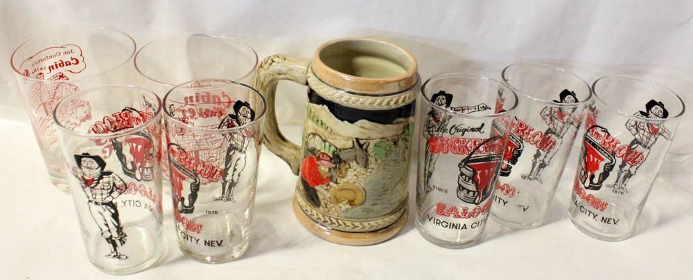 4 1/2" GLASSES WITH BUCKETS BLOOD STIEN - VIRGINIA CITY NEVADA