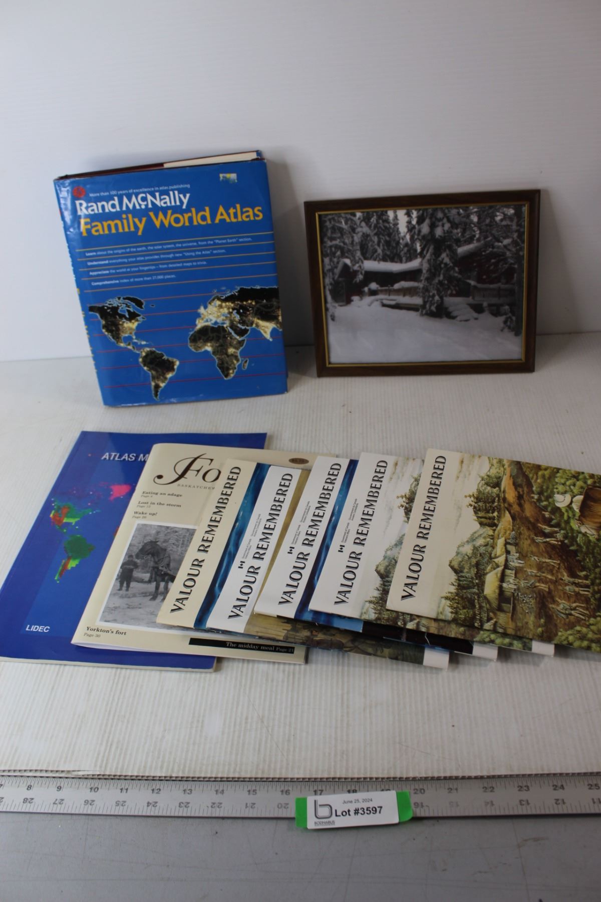 (5) Valour Remembered Books, Folklore Book, (2) Atlas Books, Picture in Frame