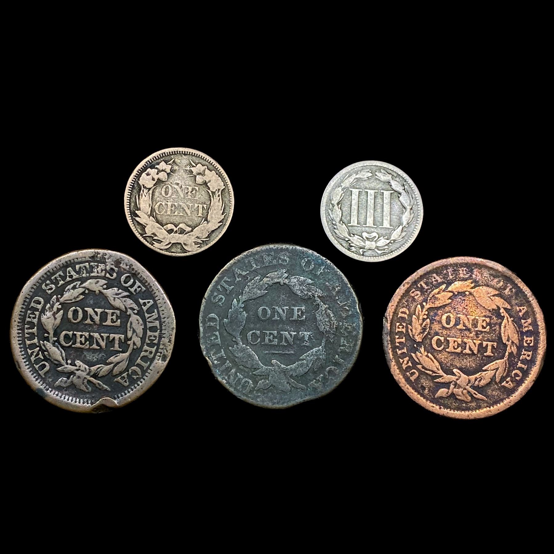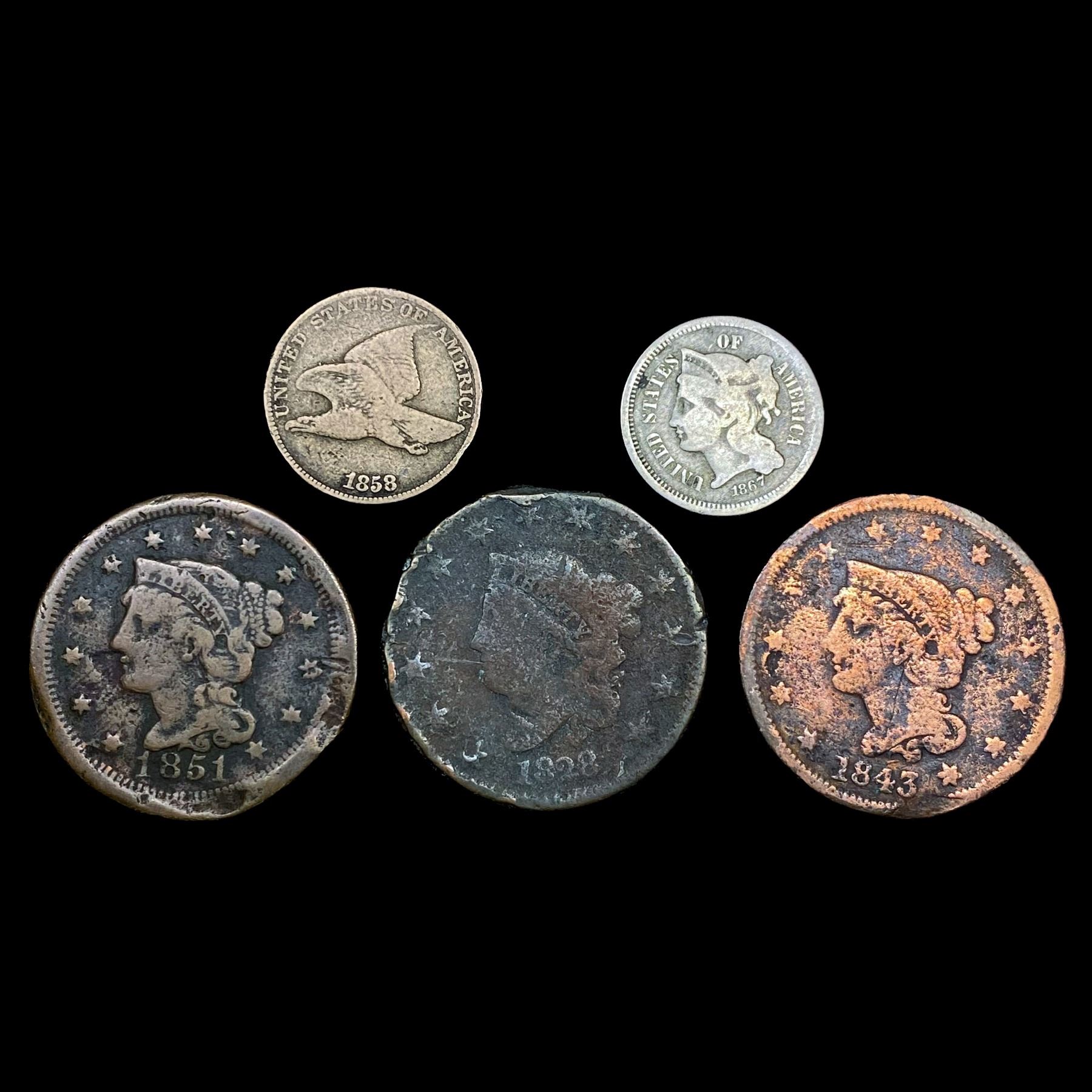 (5) Varied US Coinage (1828, 1843, 1851, 1858, 186