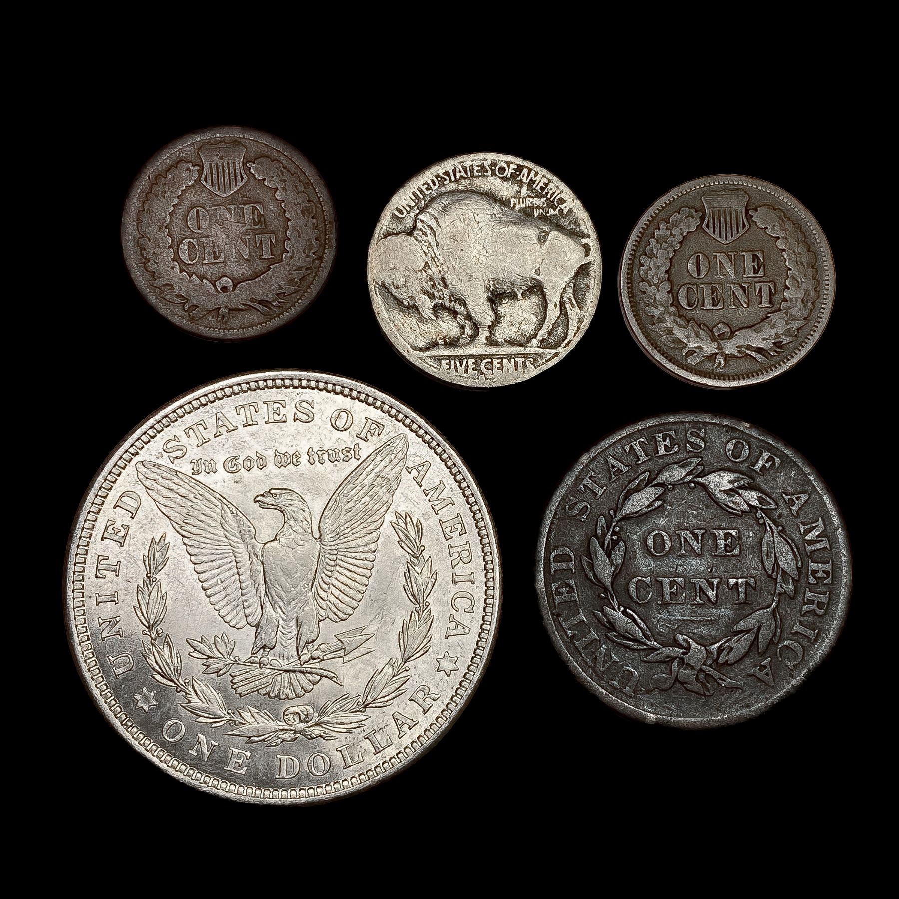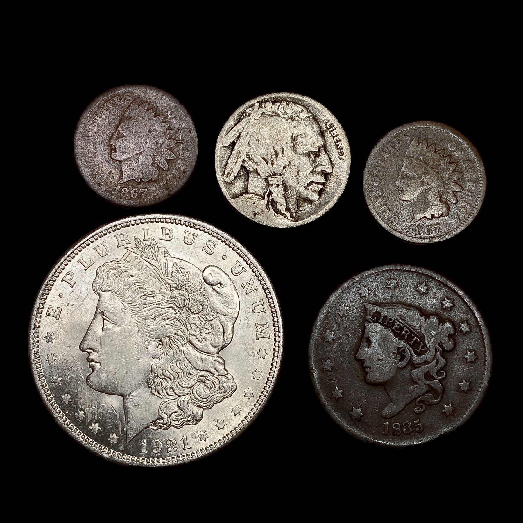 (5) Varied US Coinage (1835, (2) 1867, 1921-S, 192