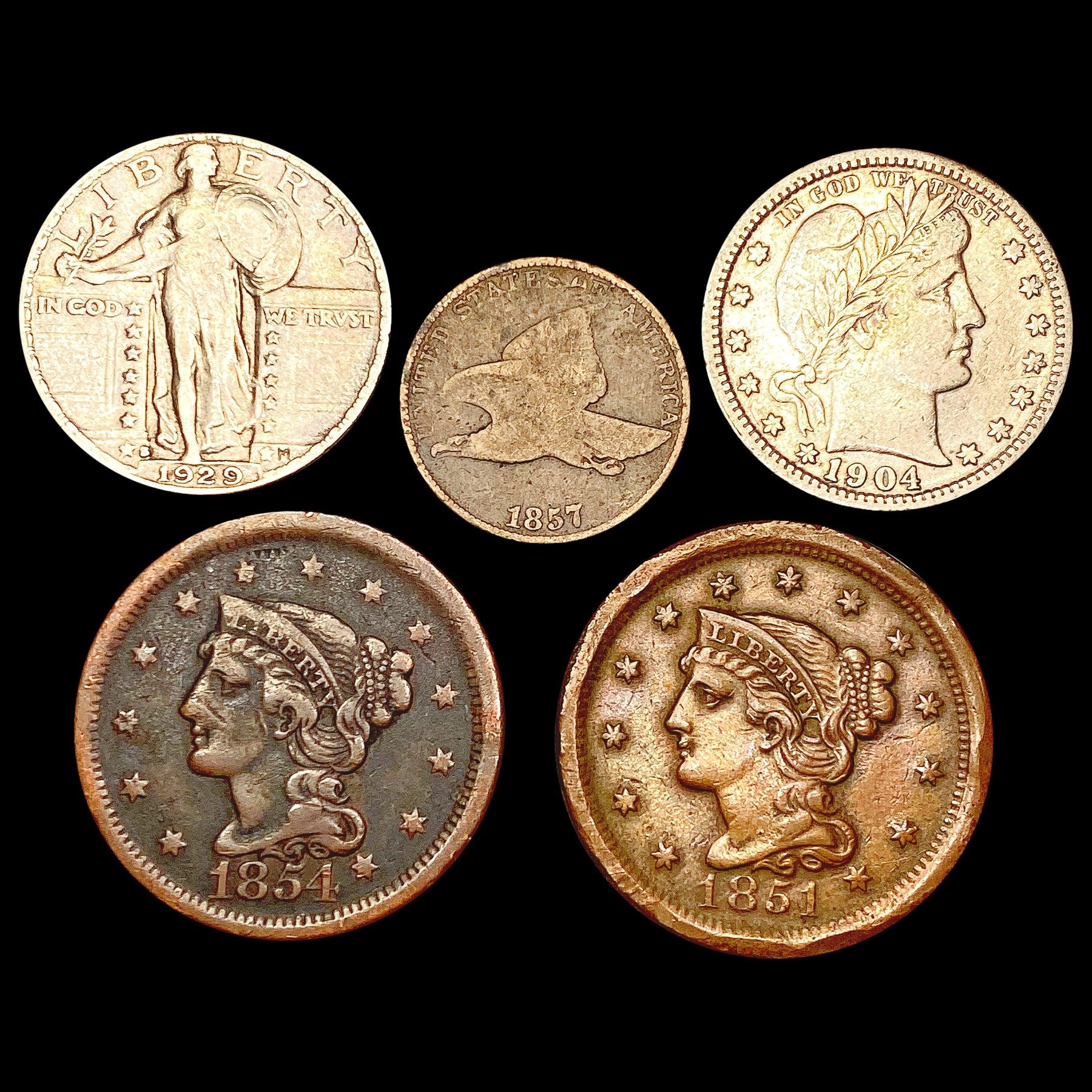 [5] Varied US Coinage [1851, 1854, 1857, 1904, 192