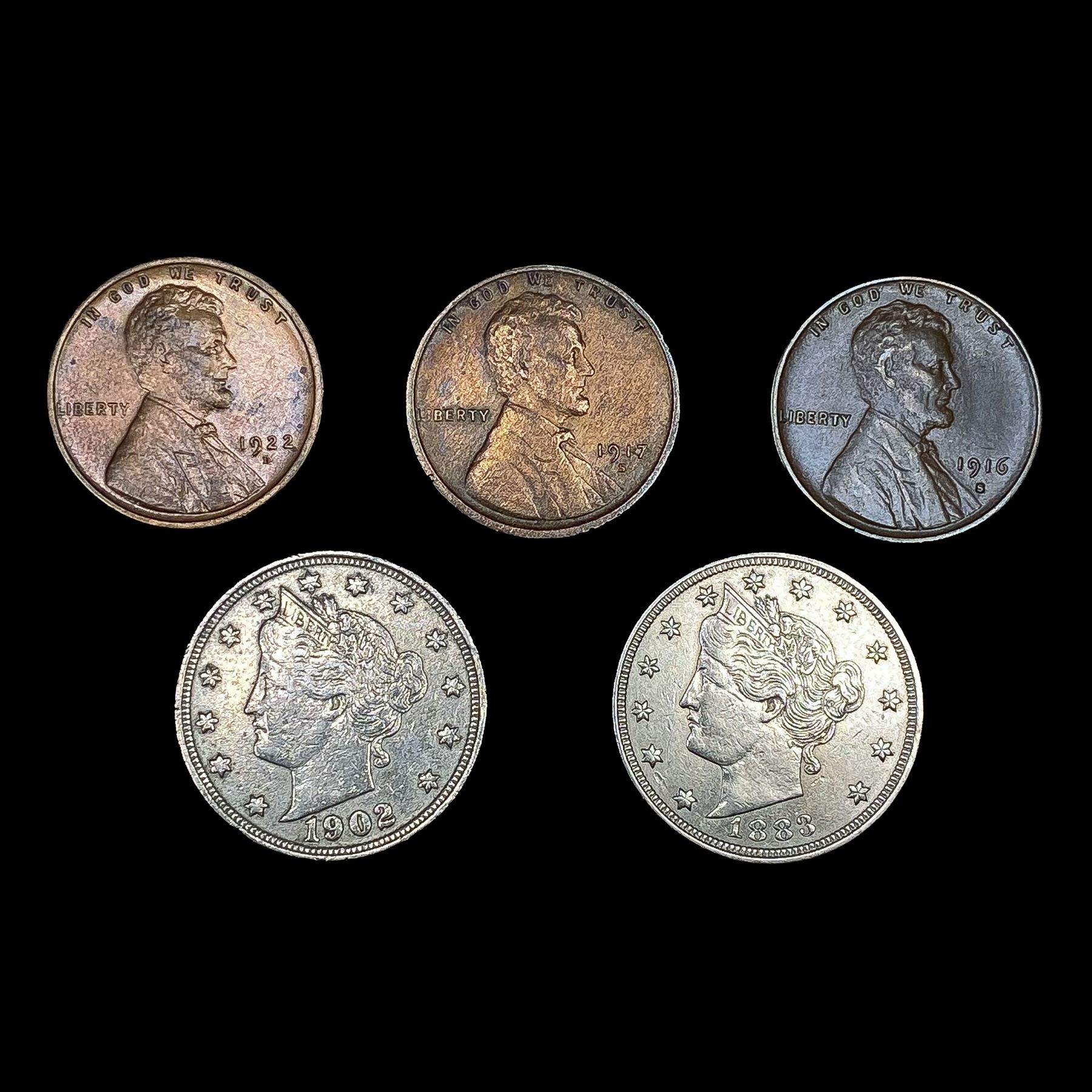 [5] Varied US Coinage (1883, 1902, 1916-S, 1917-S,