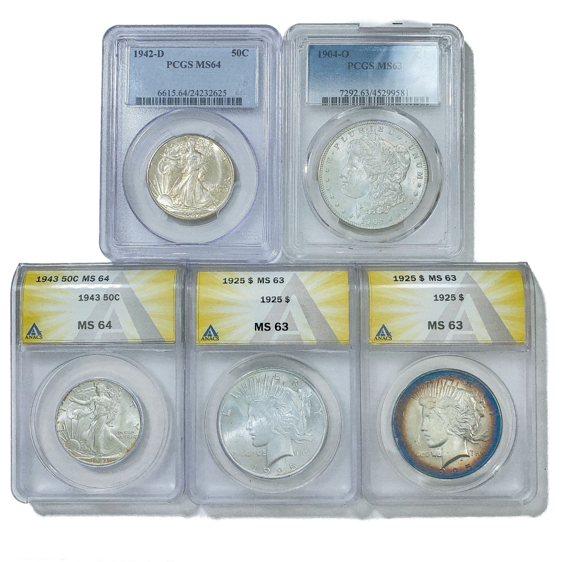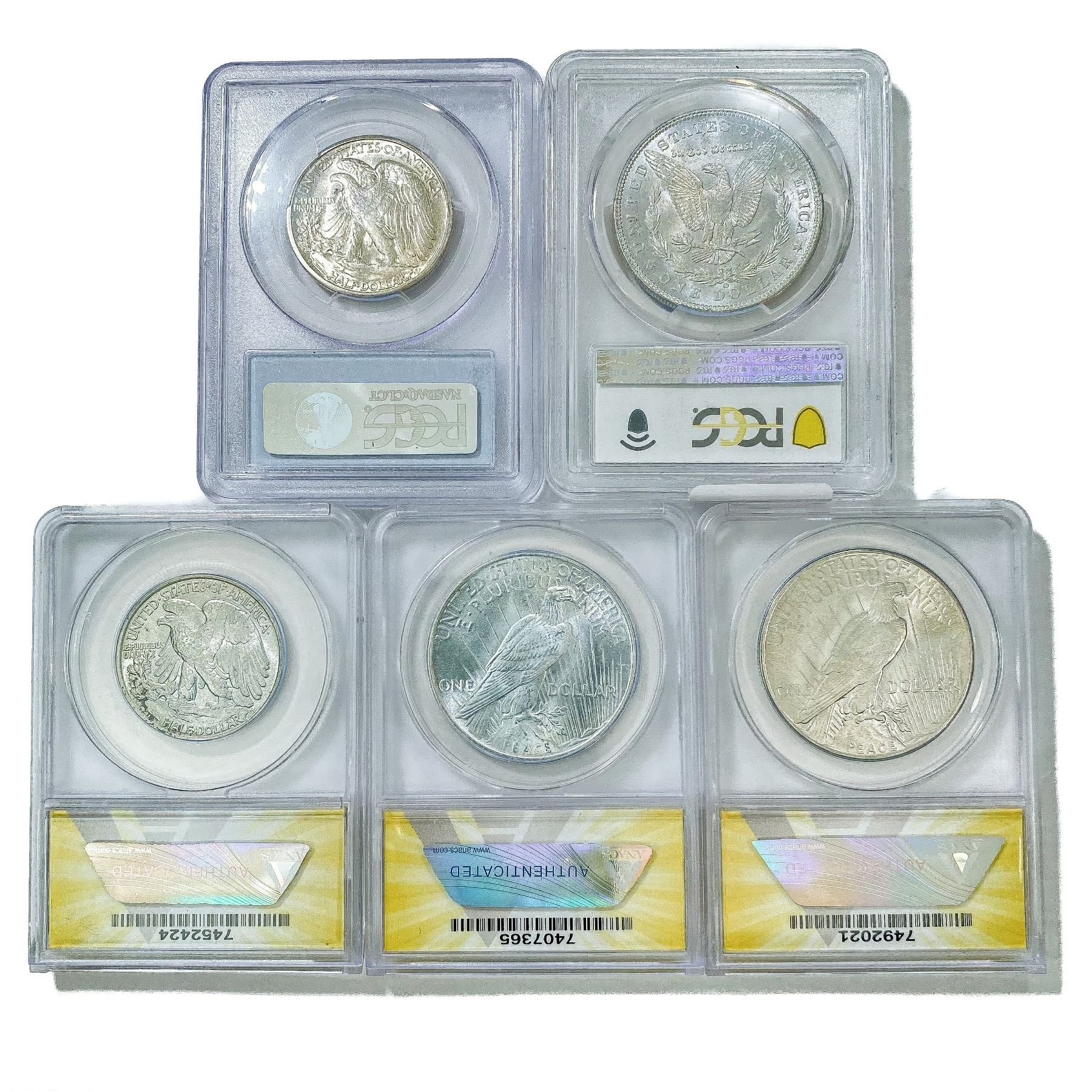 (5) Varied US Silver Coinage ANACS/PCGS MS63-4 (19