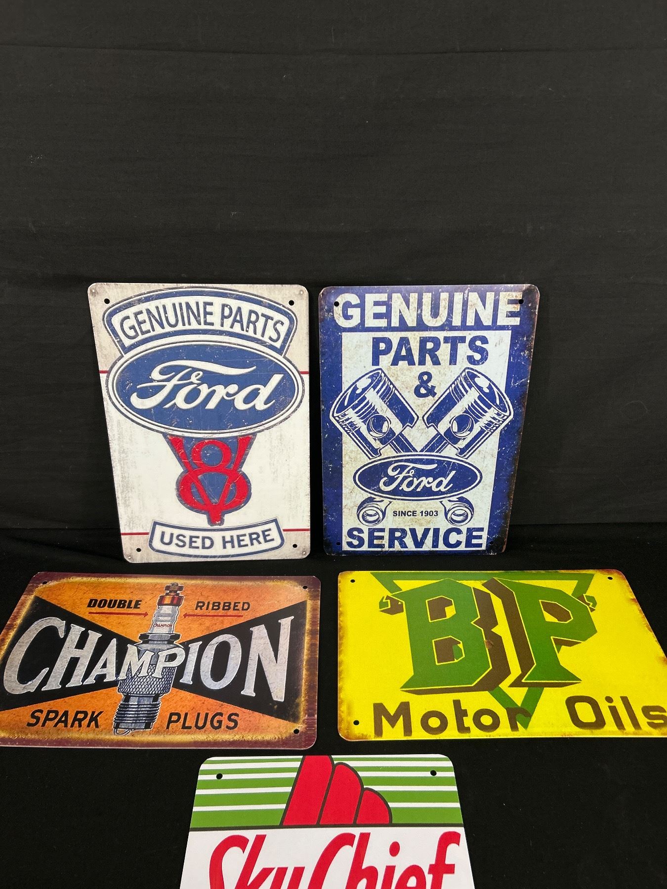 5 Various Tin Signs. Garage/ManCave. Approx. 12" x 8"