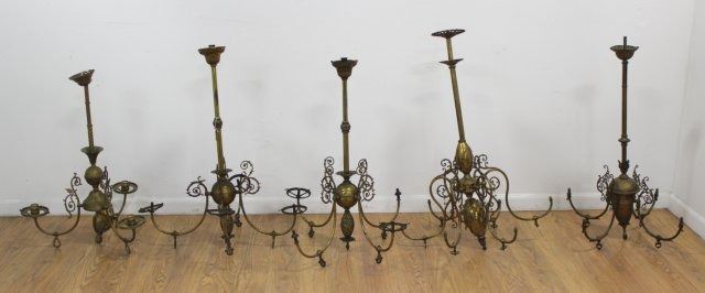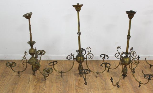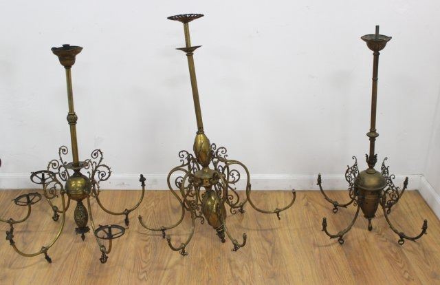 Pair 4-arm, 2-4-light, and 1-3-light. Largest approx. 36 1/2" H. (060996B, 081202C, 1.26F1) No shades. Missing nozzles.