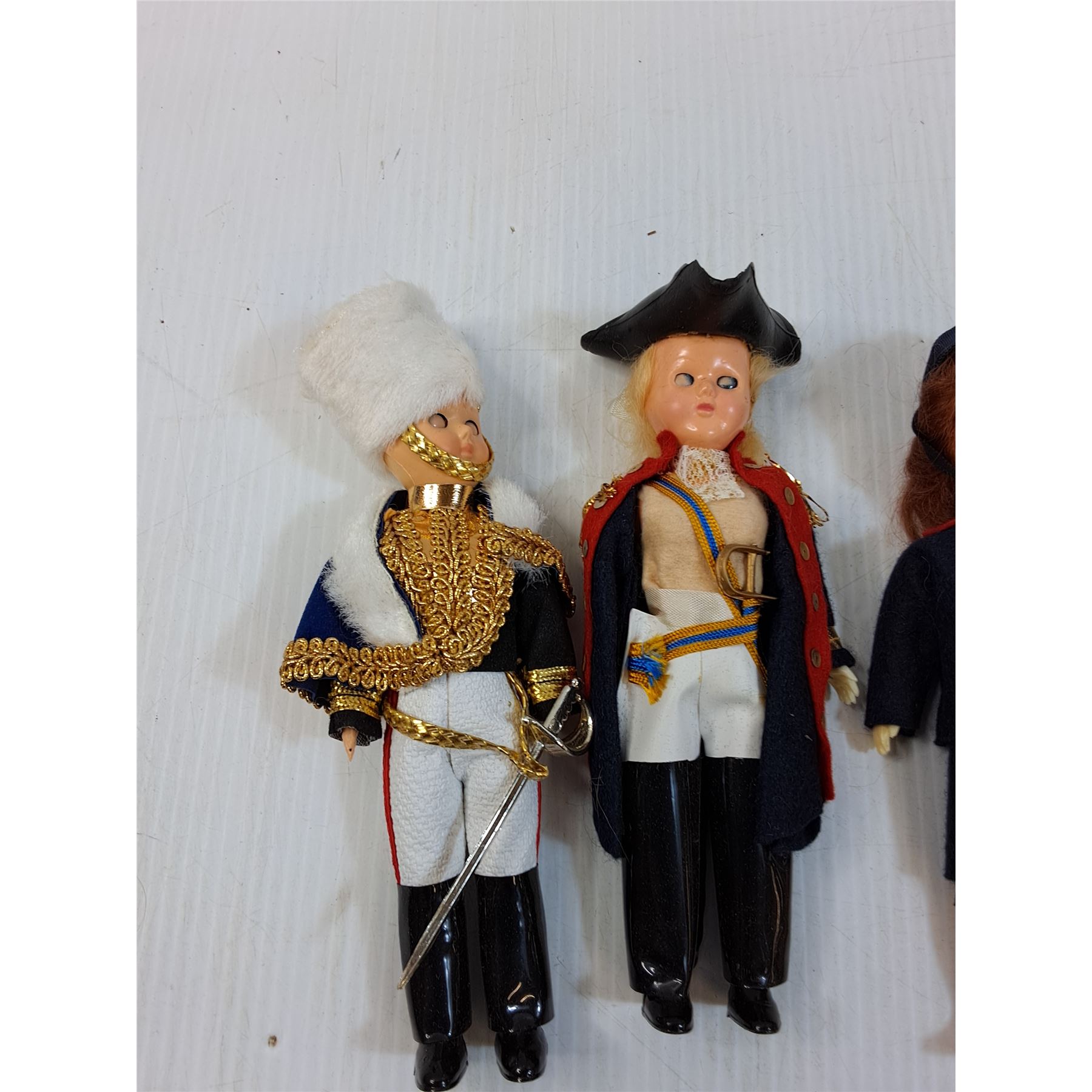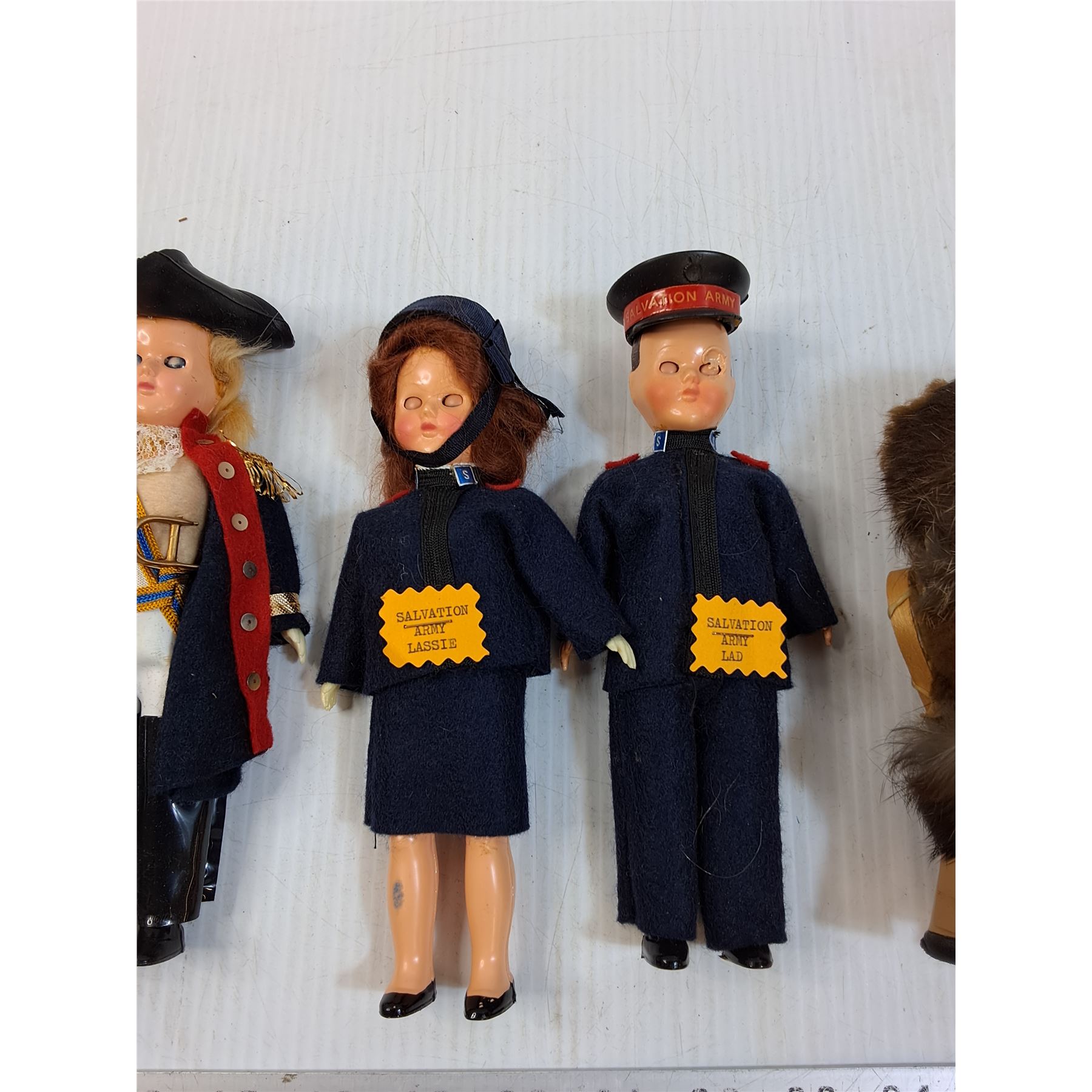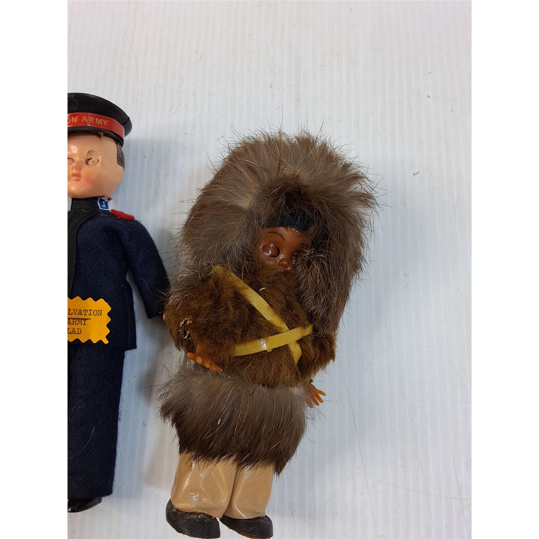 (5) Vintage Blinking Eye Dolls - Eskimo, Salvation Army, British Soliders
