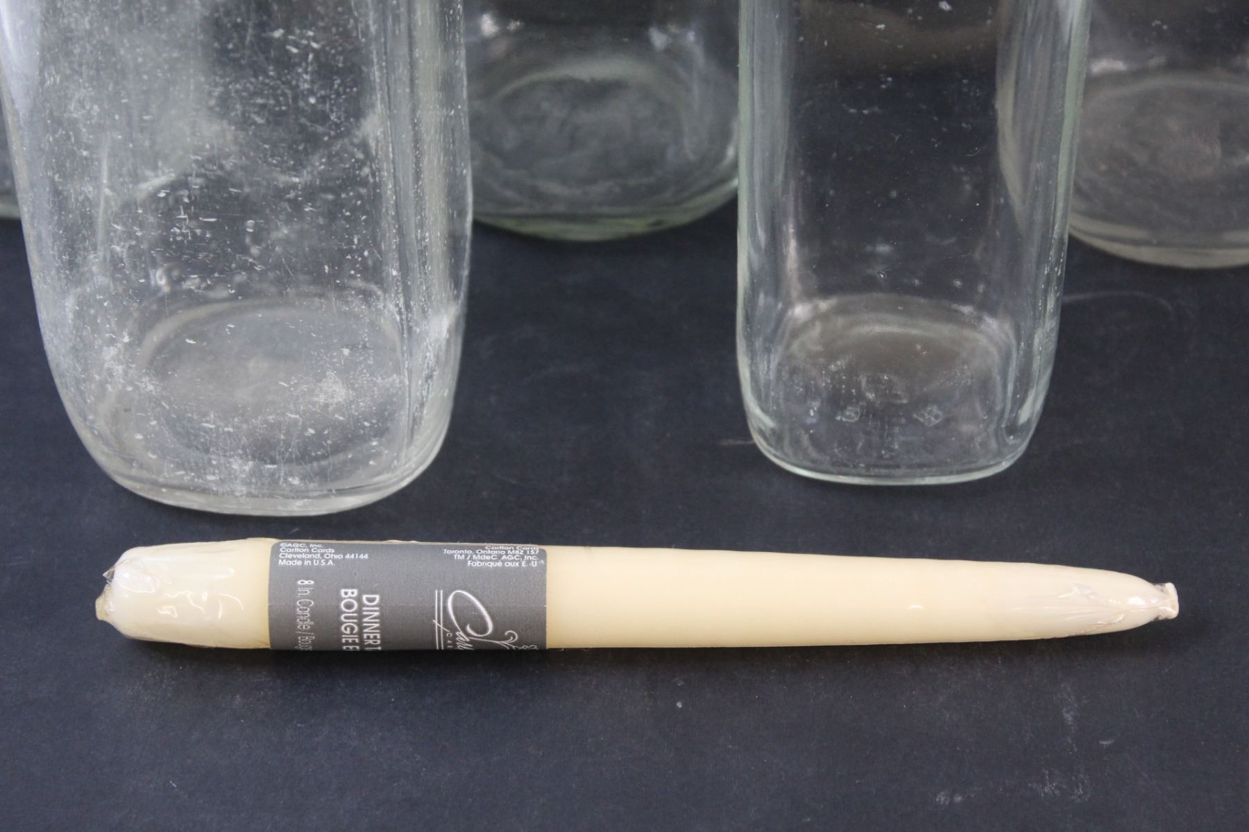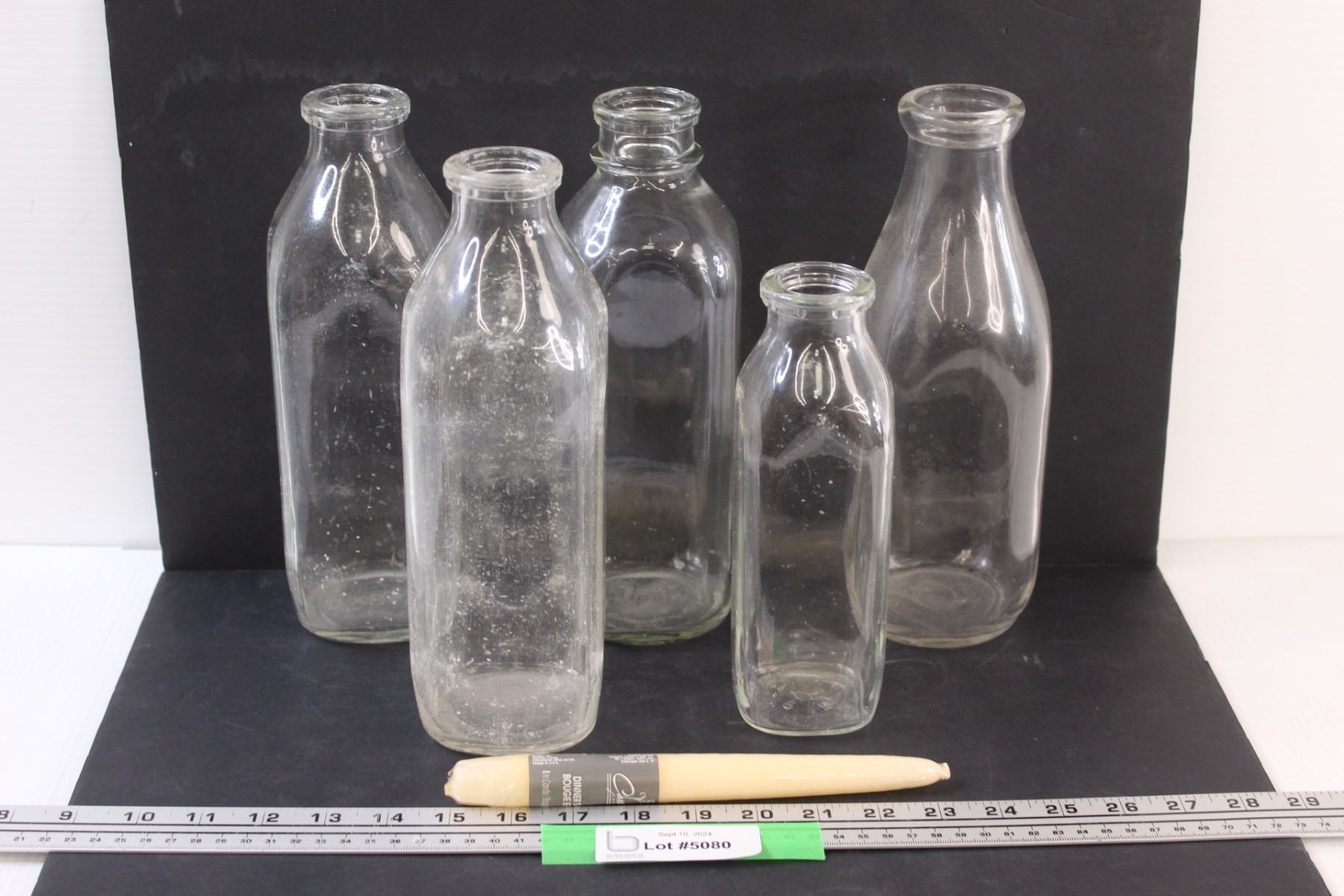 (5) Vintage Clear Milk Containers/Jars & Candle