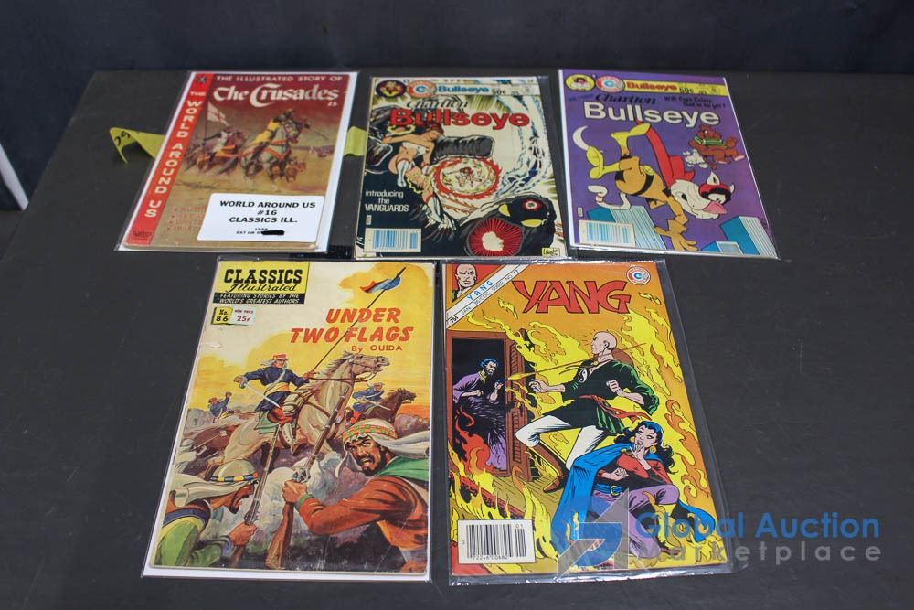 (5) Vintage Comics - Bullseye, The Crusades, Yang, Under Two Flags