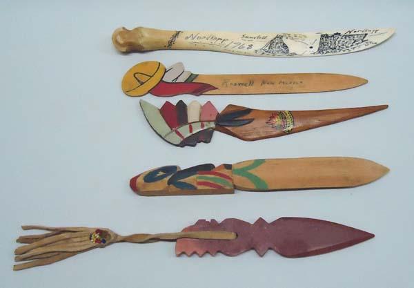 5 Vintage Letter Openers. 1 From ''Roswell New Mexico'', 1 Northwest Coast, bone, 1 soapstone, 1 from Canada. Longest measures approx. 9 1/2''. Buyers Pay Actual Shipping and Handling Charges(see terms and conditions for more information).