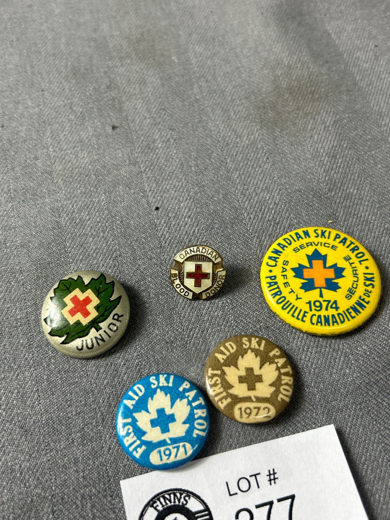 5 Vintage Red Cross First Aid Badges, Skiing & More