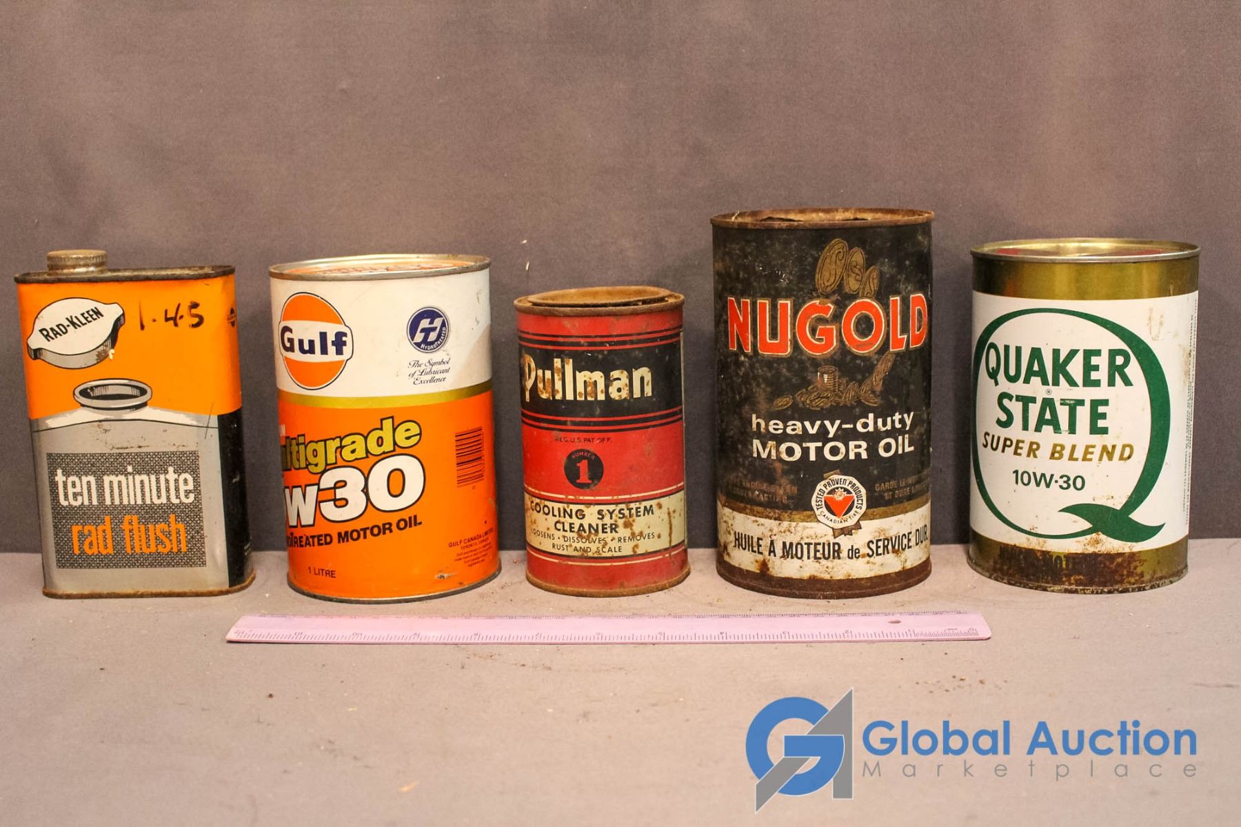 (5) Vintage Tins (Motor Oil, Rad Flush)