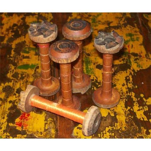 <tr><td>Title:5 Vintage Wool Mill Bobbin GEAR Tops primitive</td></tr>