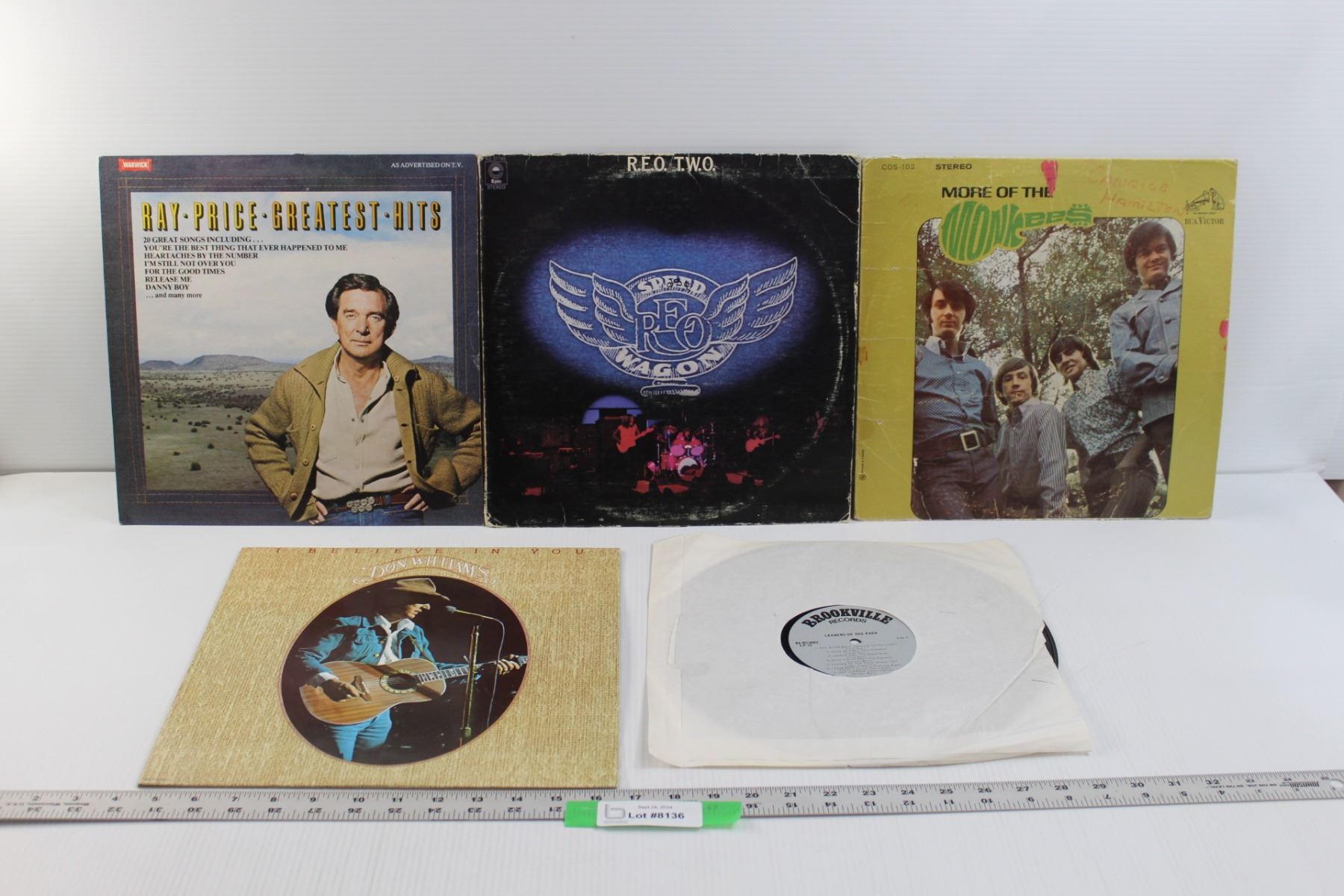 (5) Vinyl Records - Ray Price, R.E.O, Don William, More of The MPOnkees & Brookville Records  Leader