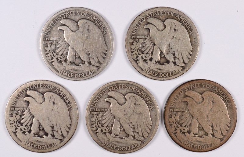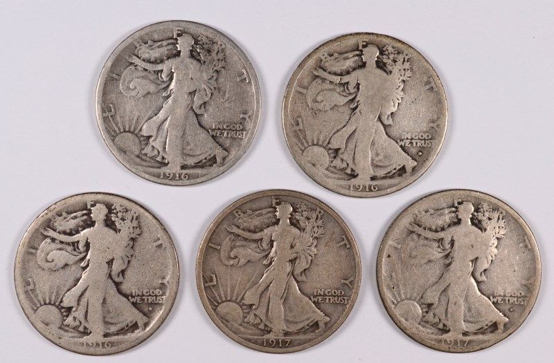 (5) WALKING LIBERTY HALF DOLLARS (16, 16-D, 16-S, 17, 17-D)