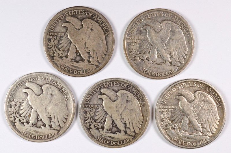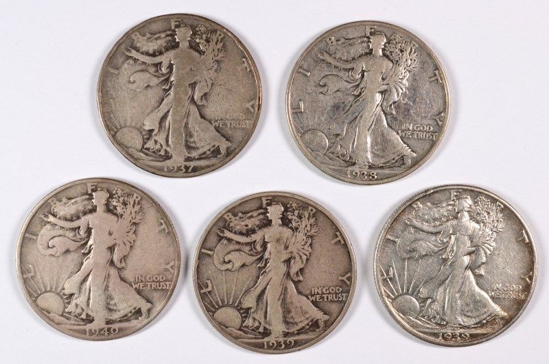 (5) WALKING LIBERTY HALF DOLLARS (37-D, 38, 39, 39-D, 40-S)