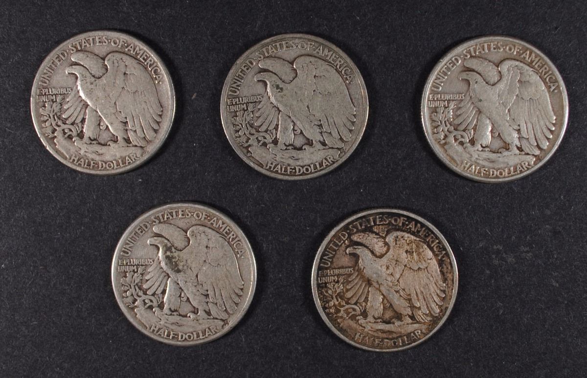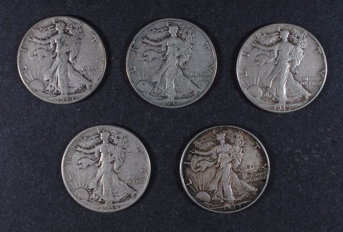 5 - WALKING LIBERTY HALF DOLLARS - '42 XF, '44 F, '44-S VF, '44 F, '45 F