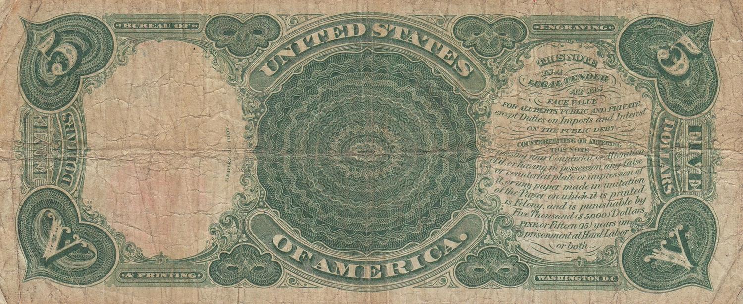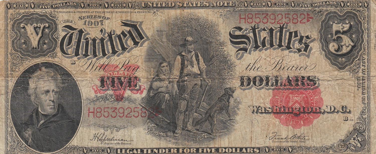 $5 '''WOODCHOPPER''' LEGAL TENDER 1907