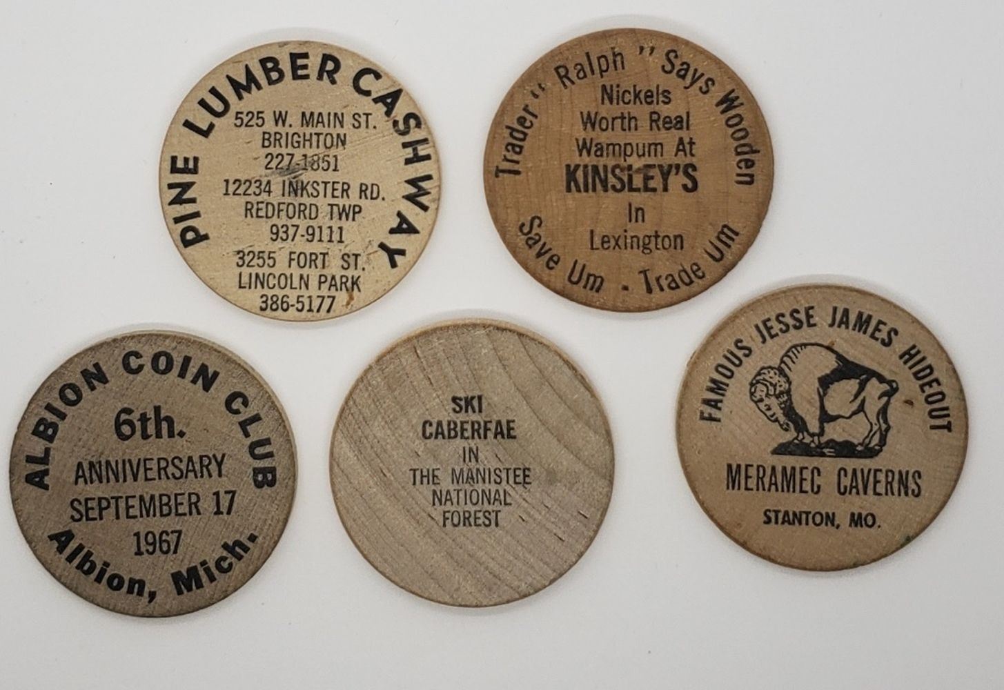 MERAMEC CAVERNS STANTON MO; ALBION COIN CLUB 6th ANNIV 1967 ALBION MICH; KINSLEYS IN LEXINGTON; SKI CABERFAE MANISTEE NAT FOREST; PINE LUMBER CASHWAY LINCOLN PARK