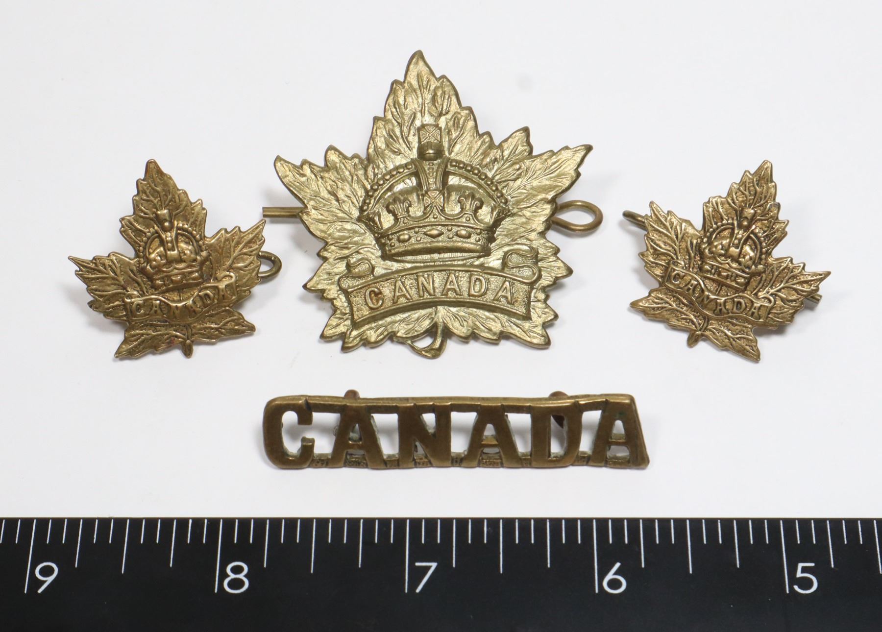 SET INCLUDING COLLAR BADGES AND SHOULDER TITLE WORLD WAR ONE CANADA CANADIAN MILITARY FORCES ARMY CEF ALLIED FORCES