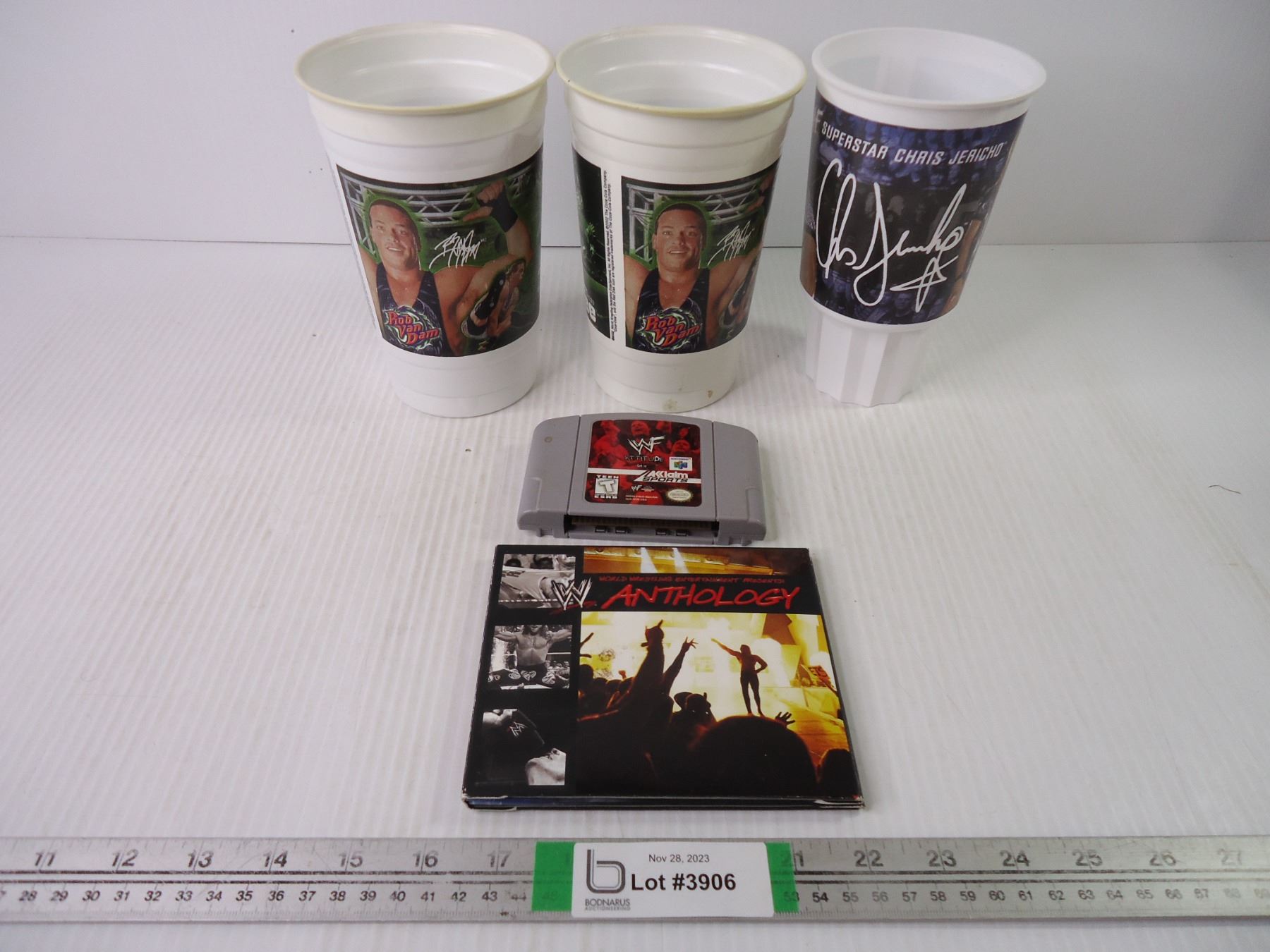 (5) WWF / WWE Items- Anthology, Nintendo Game, (3) Collector Cups
