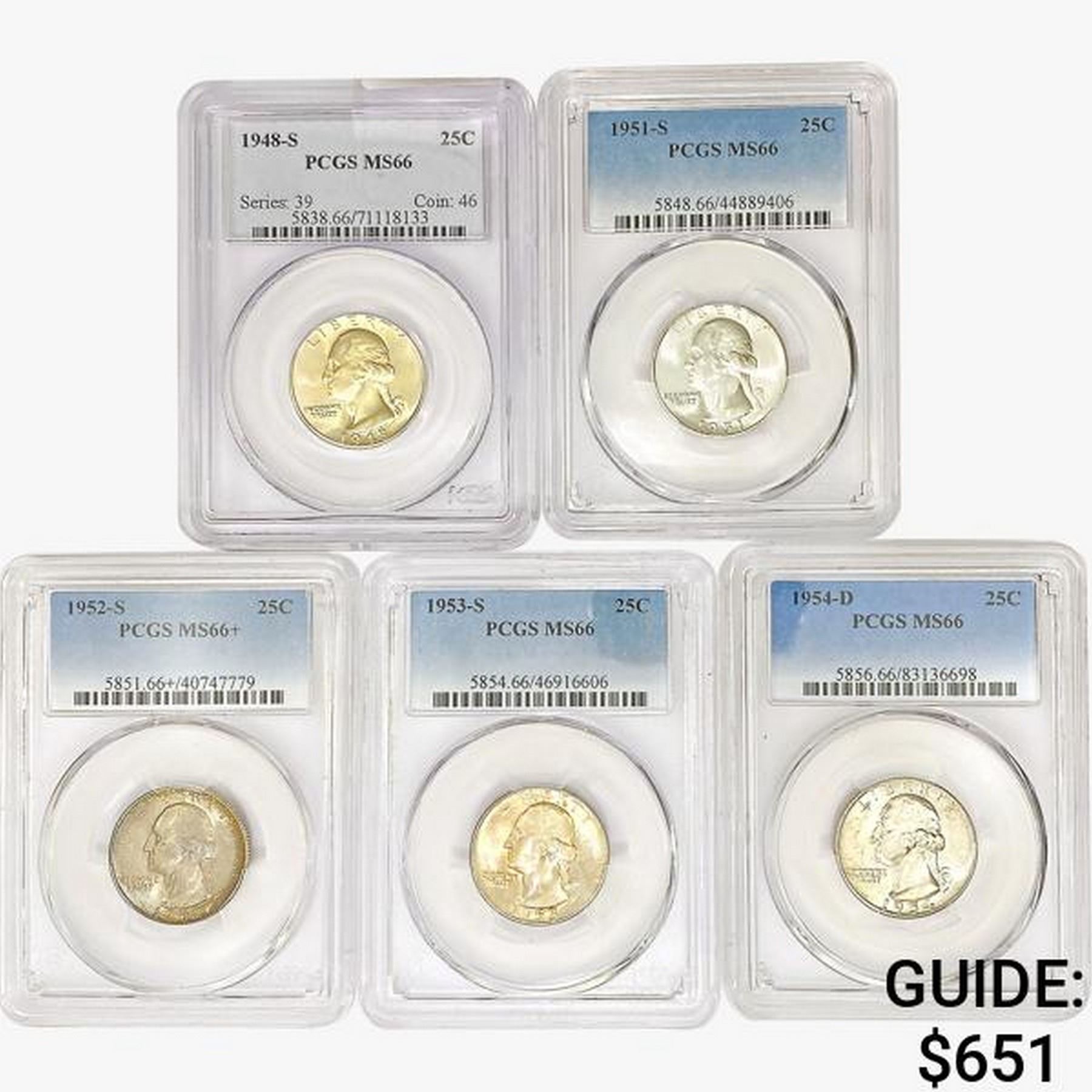 [5] Wash. Silver Quarters PCGS MS66 [1948-S, 1951-