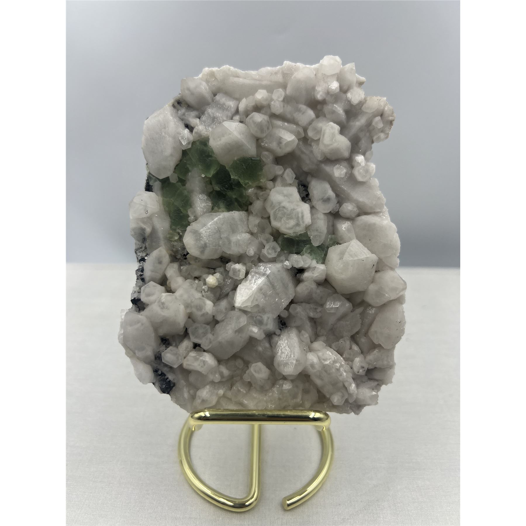 5 X 3 INCH GREEN FLUORITE WITH CALCITE SPECIMEN ON STAND