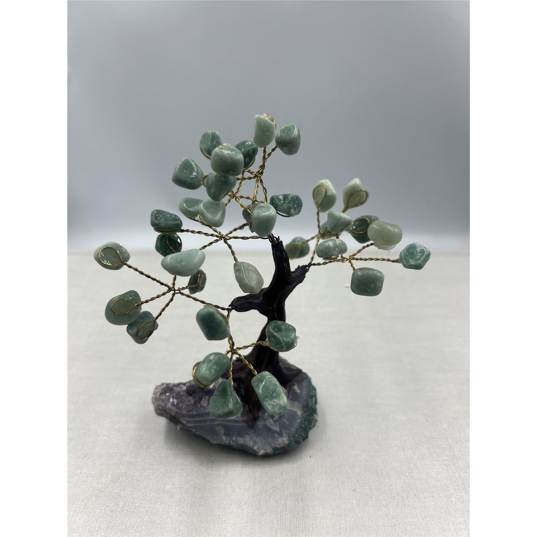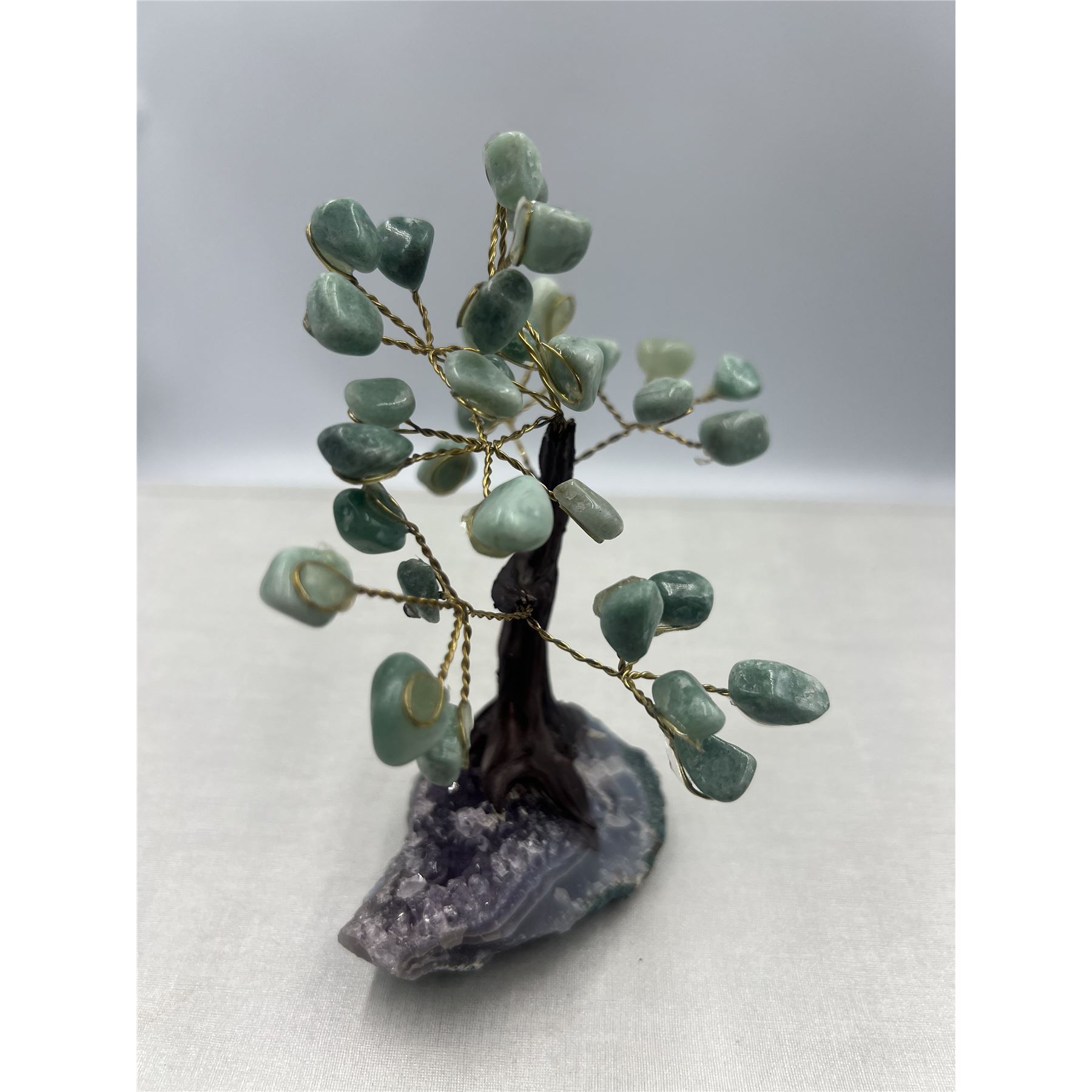 5 X 5 INCH GREEN AVENTURINE WITH AMETHYST BASE BOSAI TREE