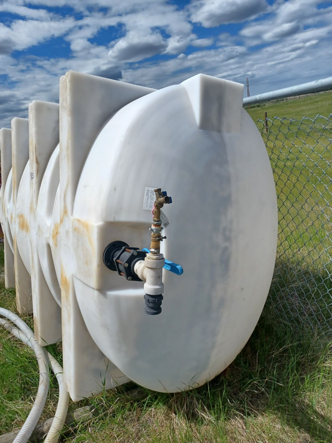 5' X 5' X 10FT. PLASTIC WATER TANK C/W VALVE & 2 HOSE PCS.