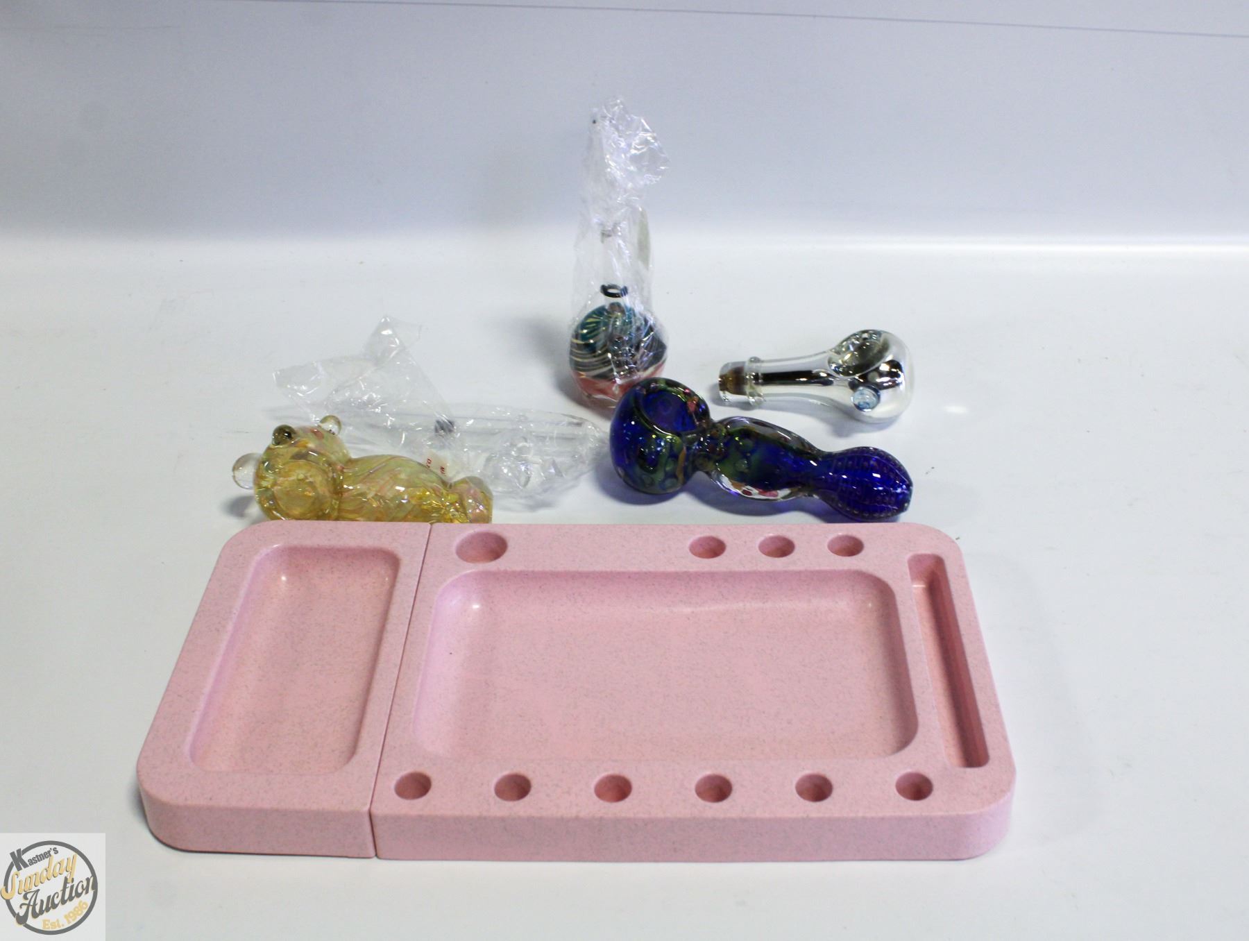 5 X GLASS PIPE AND ROLLING TRAY