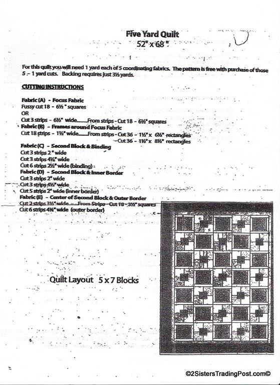 Five yards of material and pattern to make a 'Five Yard Quilt' finished size 52" x 68" MSRP $40.00