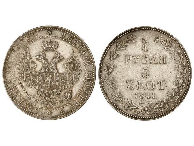 5 Zlotych-3/4 Rublo. 1841-MW. NICOLÁS I. AR. C-133. EBC-.