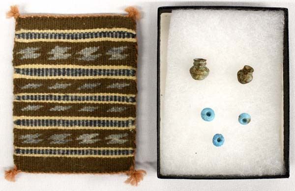 5 Native American Zuni Carved Turquoise Micro-Miniature Pots & Miniature Navajo Sampler, sampler measures 4.25'' x 3.25'', Sweet!!!!