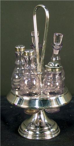 5 bottle cruet set w/ all purple & matching bottles circa 1910
