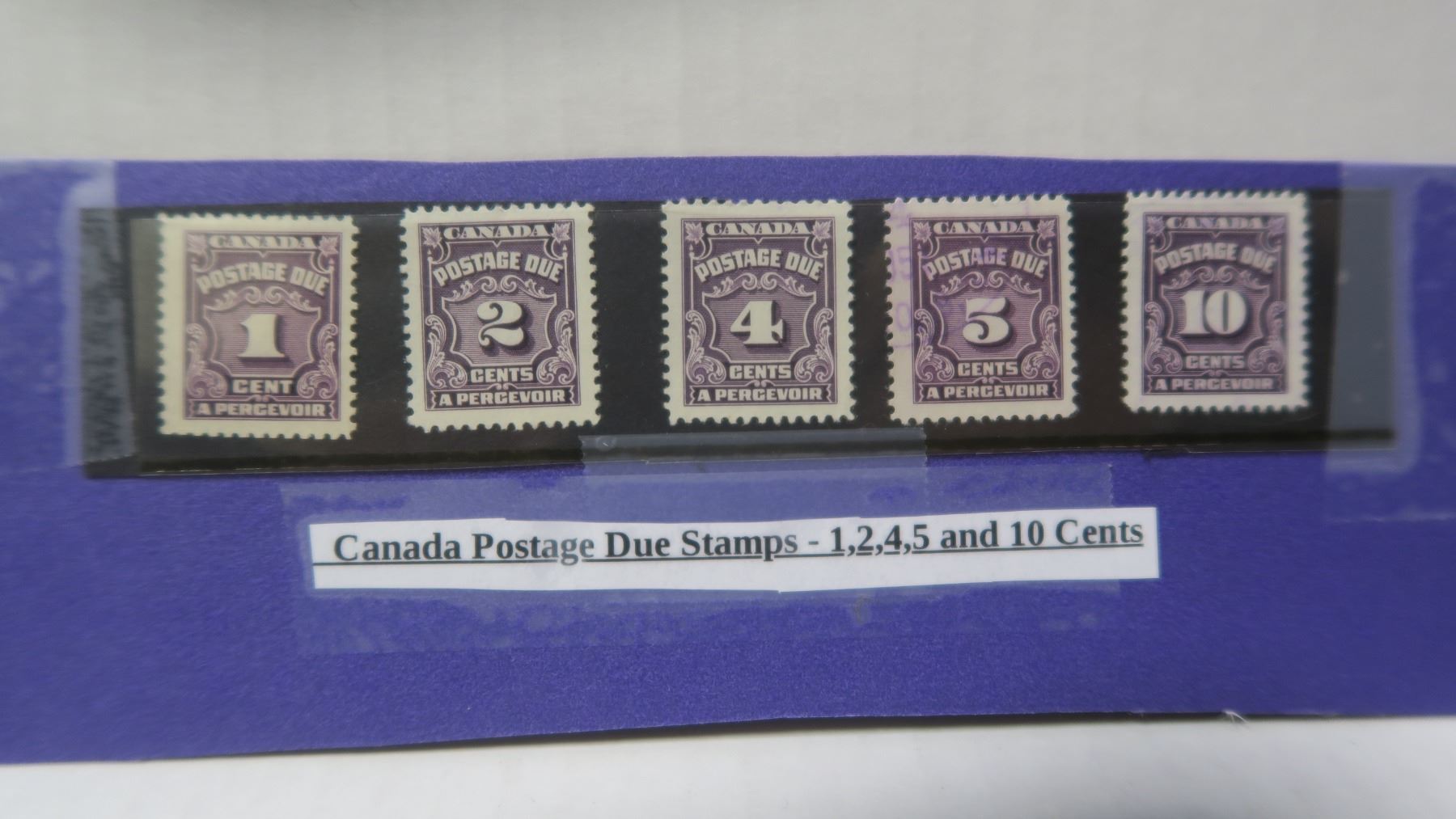 5 - canada postage due stamps - 1,2,4,5, and 10 cent
