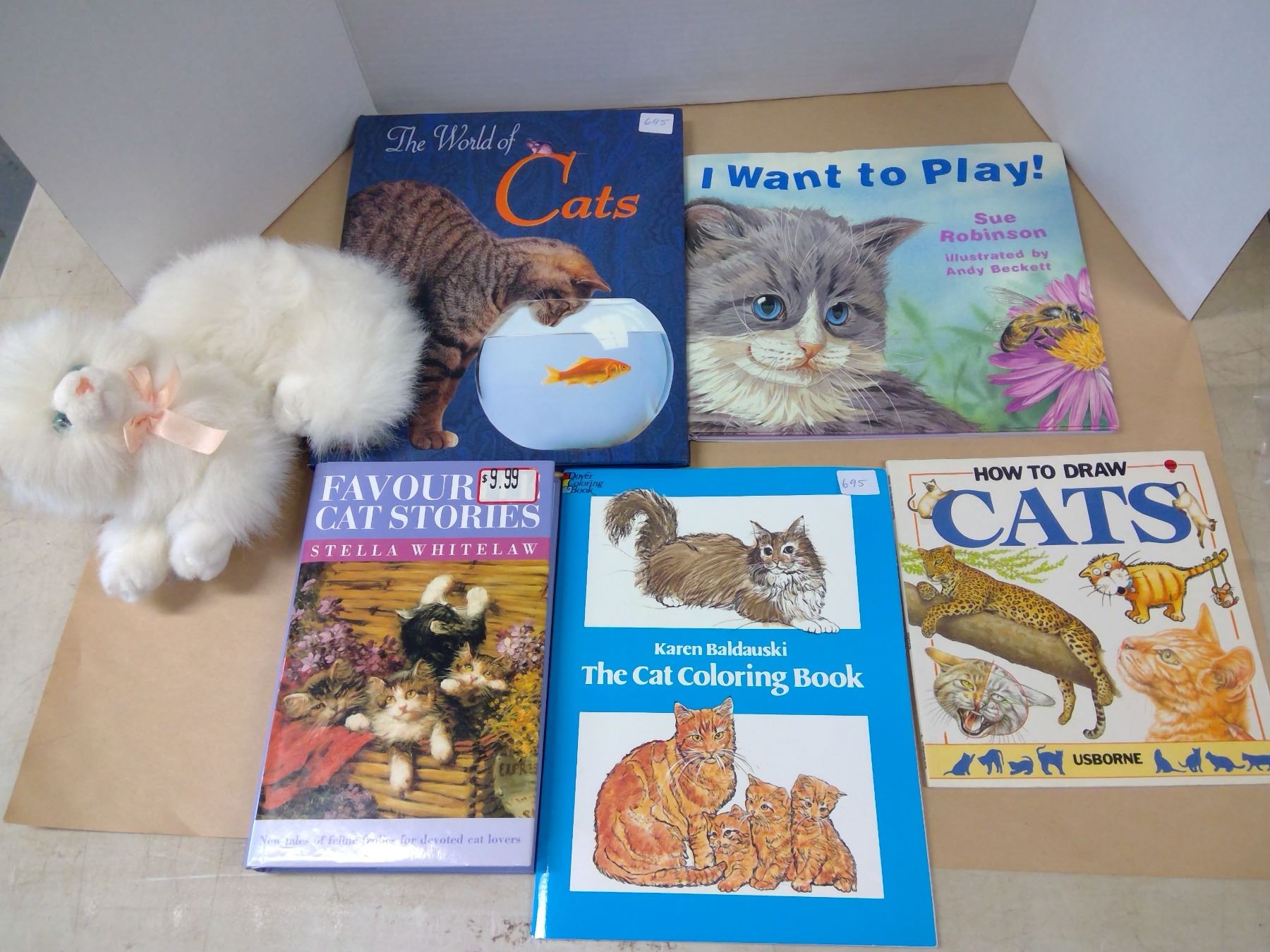5 cat books + plush