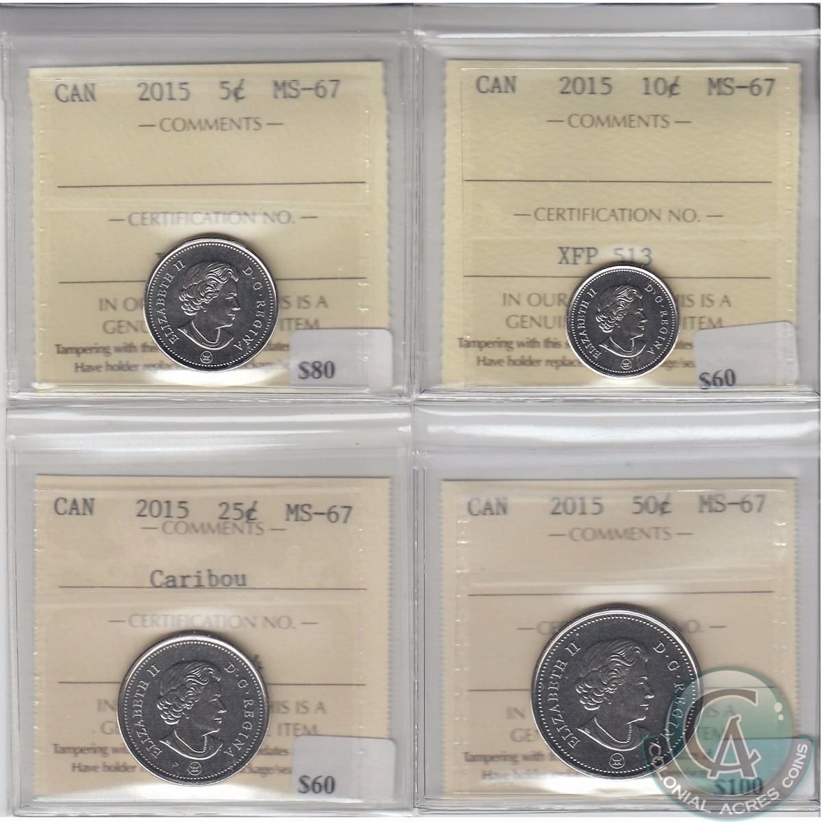 5-cent, 10-cent, 25-cent, & 50-cent 2015 ICCS Certified MS-67. 4pcs.