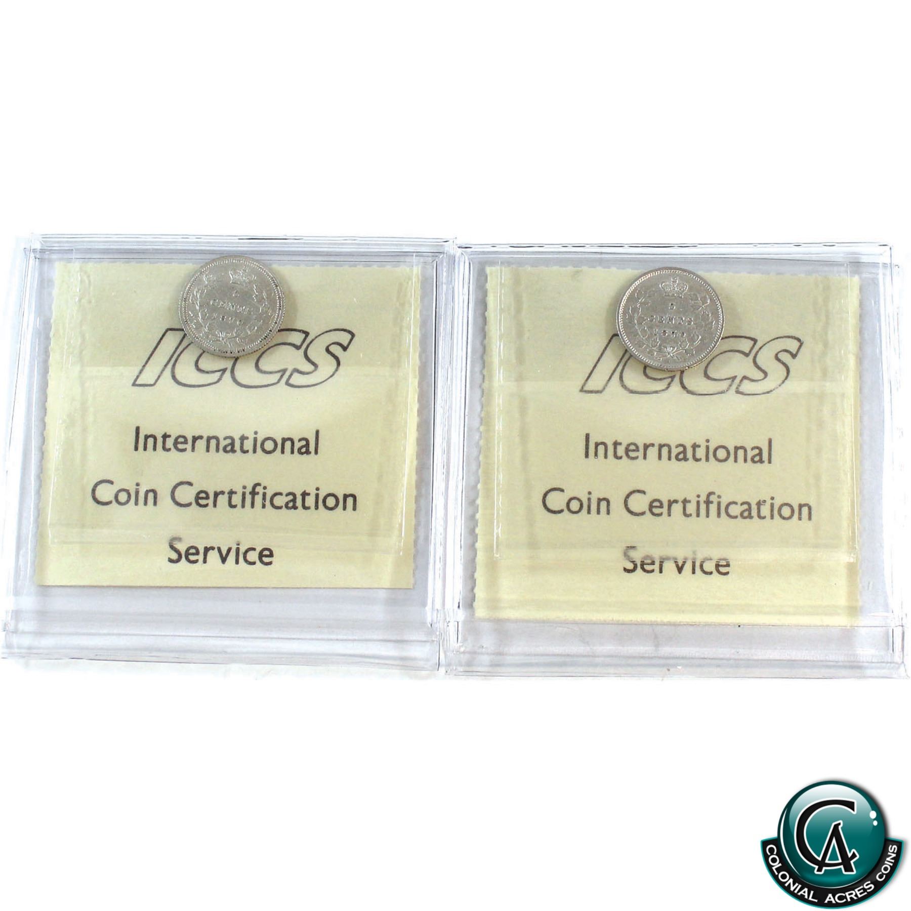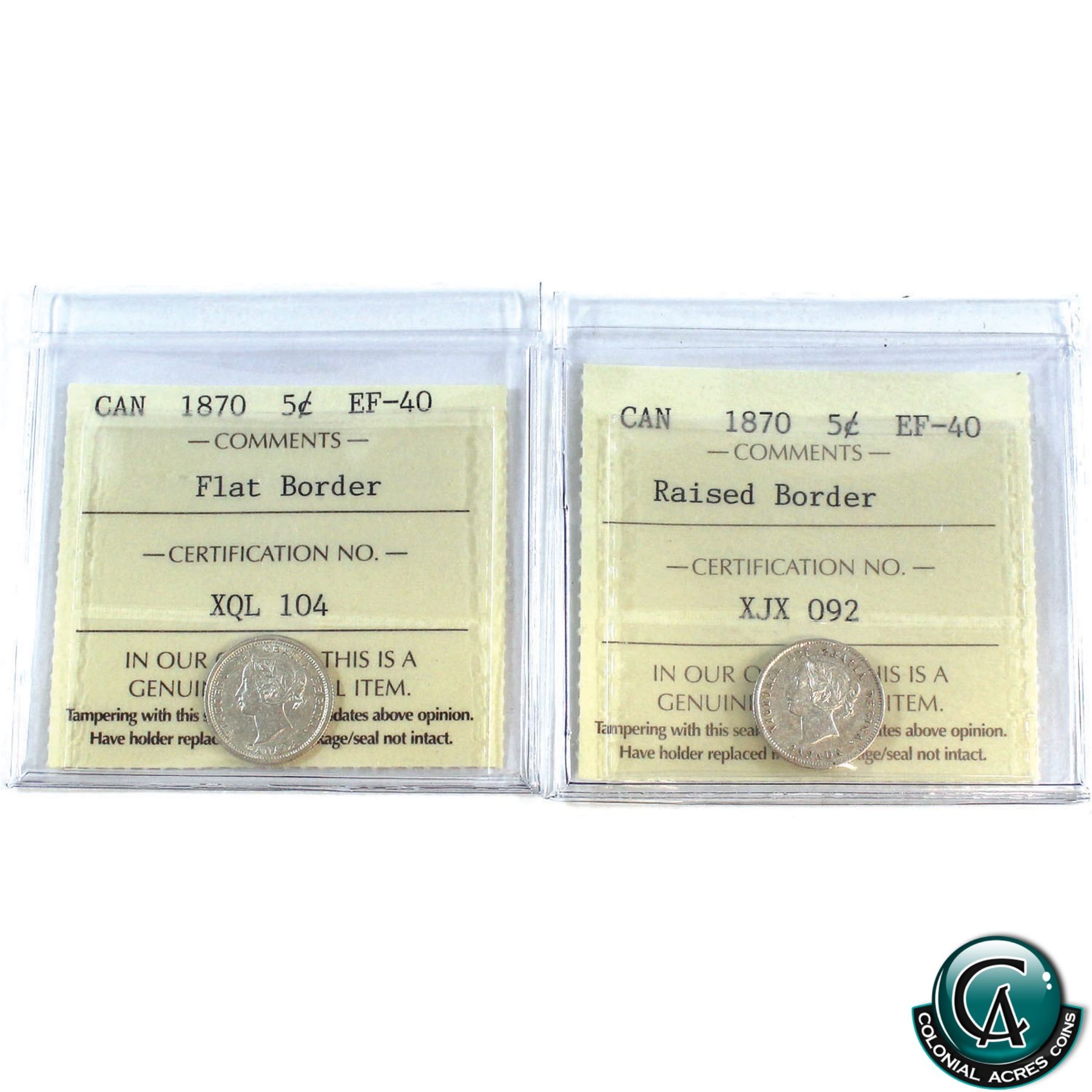5-cent 1870 Raised Border & 1870 Flat Border ICCS Certified EF-40. 2pcs