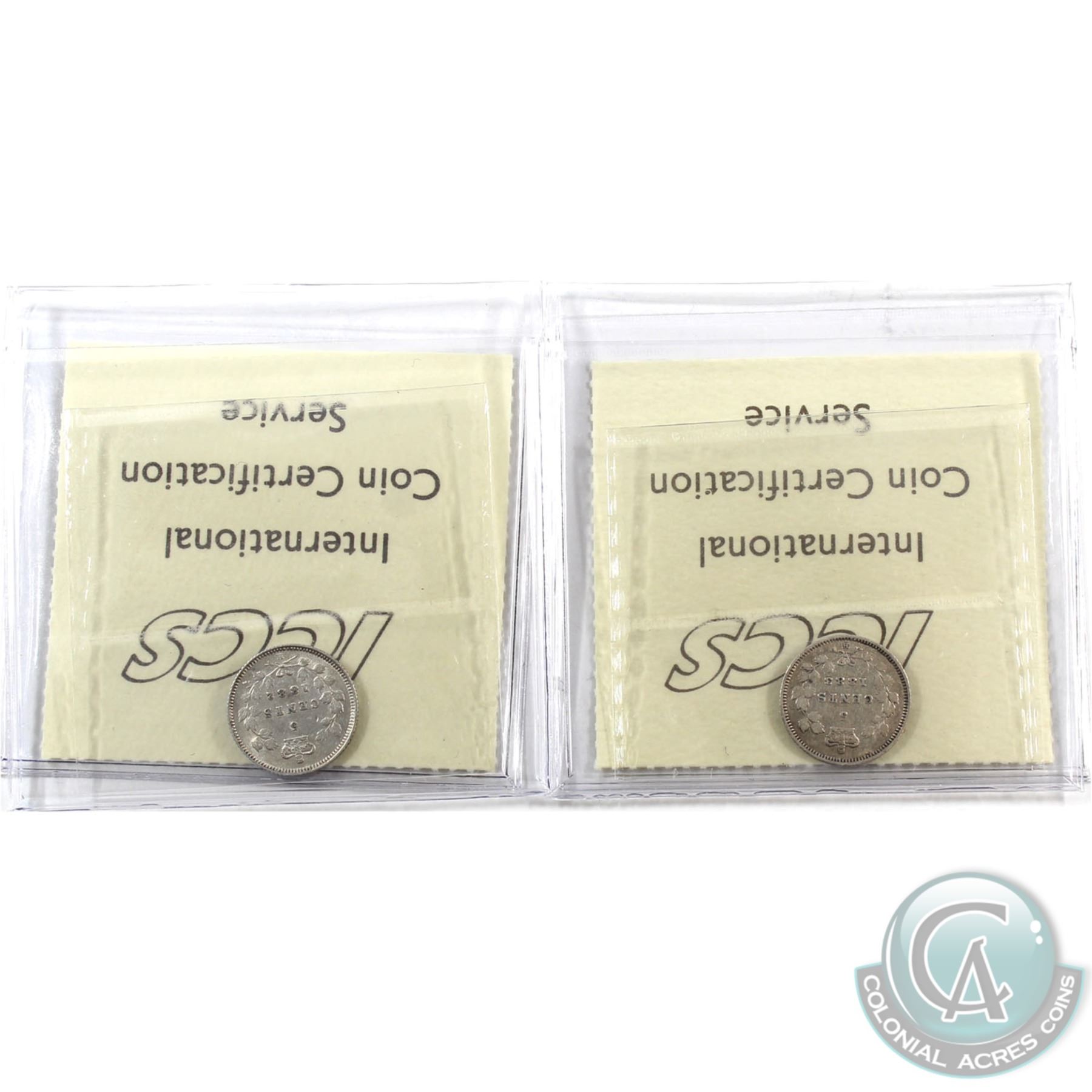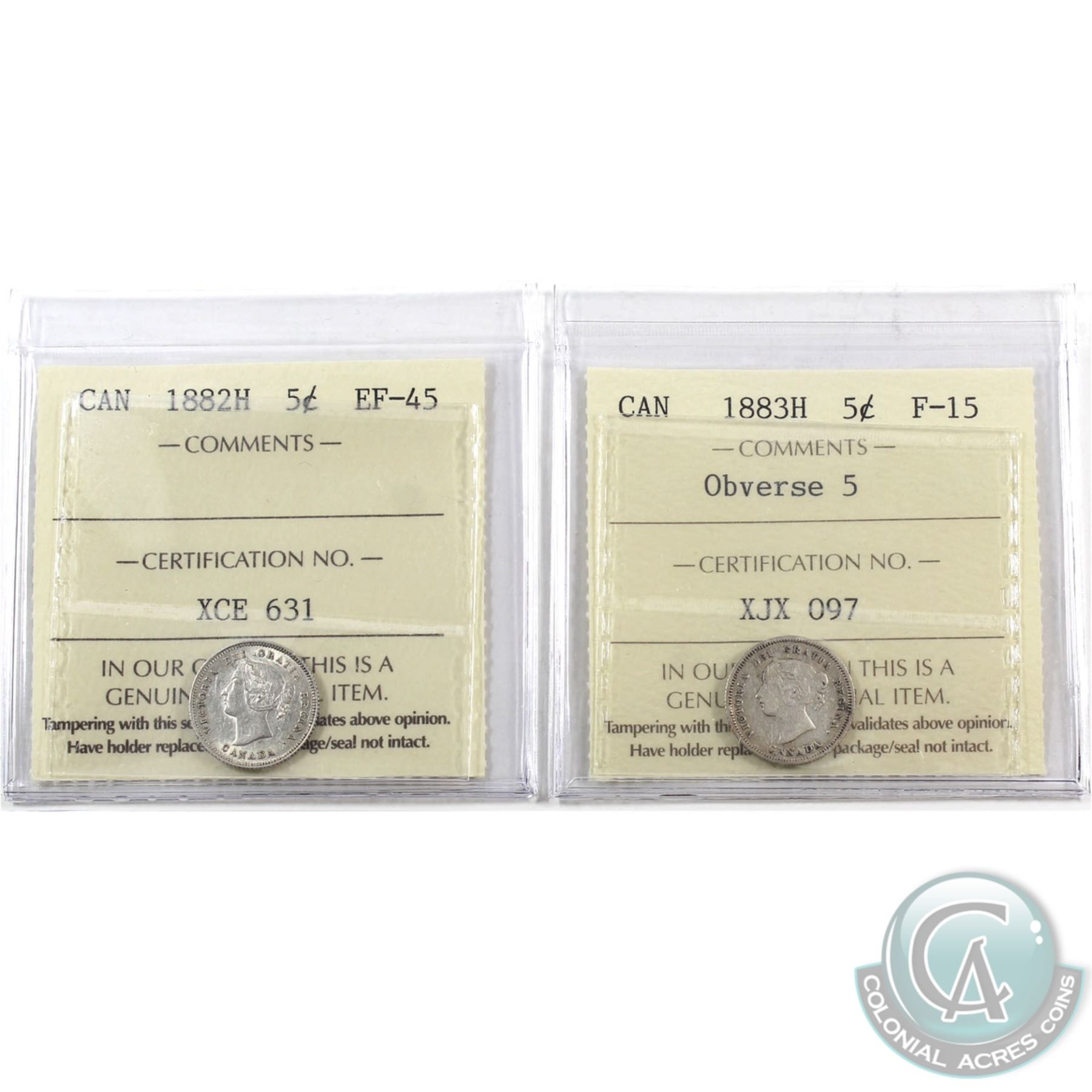 5-cent 1882H ICCS Certified EF-45 & 1883H Obverse 5 ICCS F-15. 2pcs