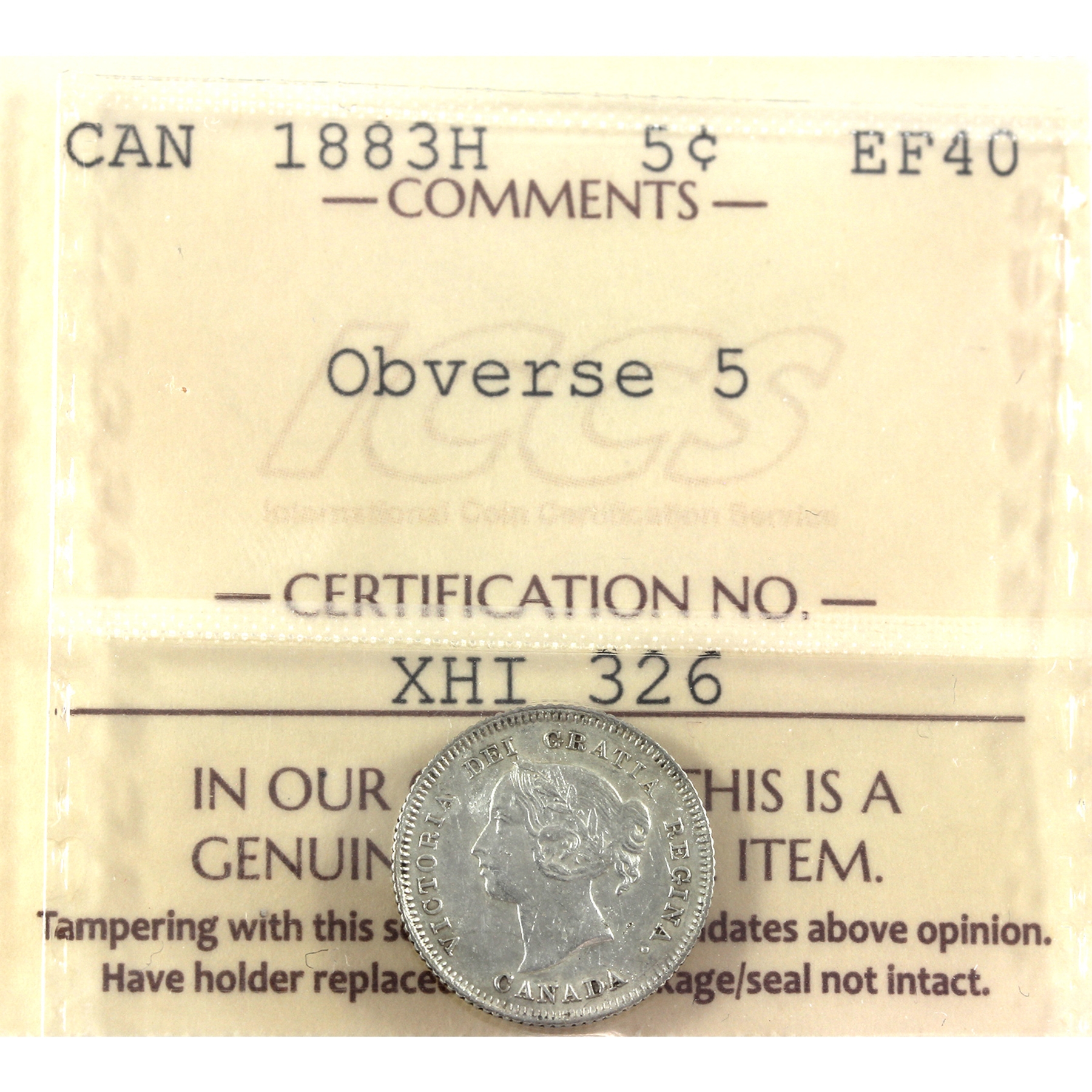 5-cent 1883H Obverse 5 ICCS EF40